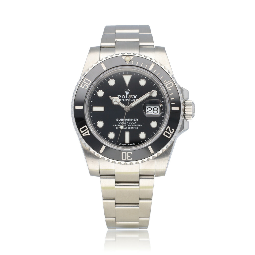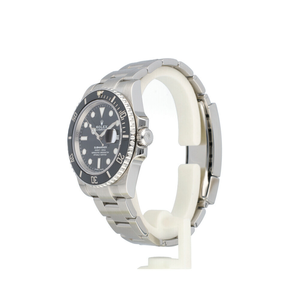 In very good condition Rolex Submariner Date with black dial, black ceramic bezel and steel Oyster braccelet from 2018 complete with box and papers