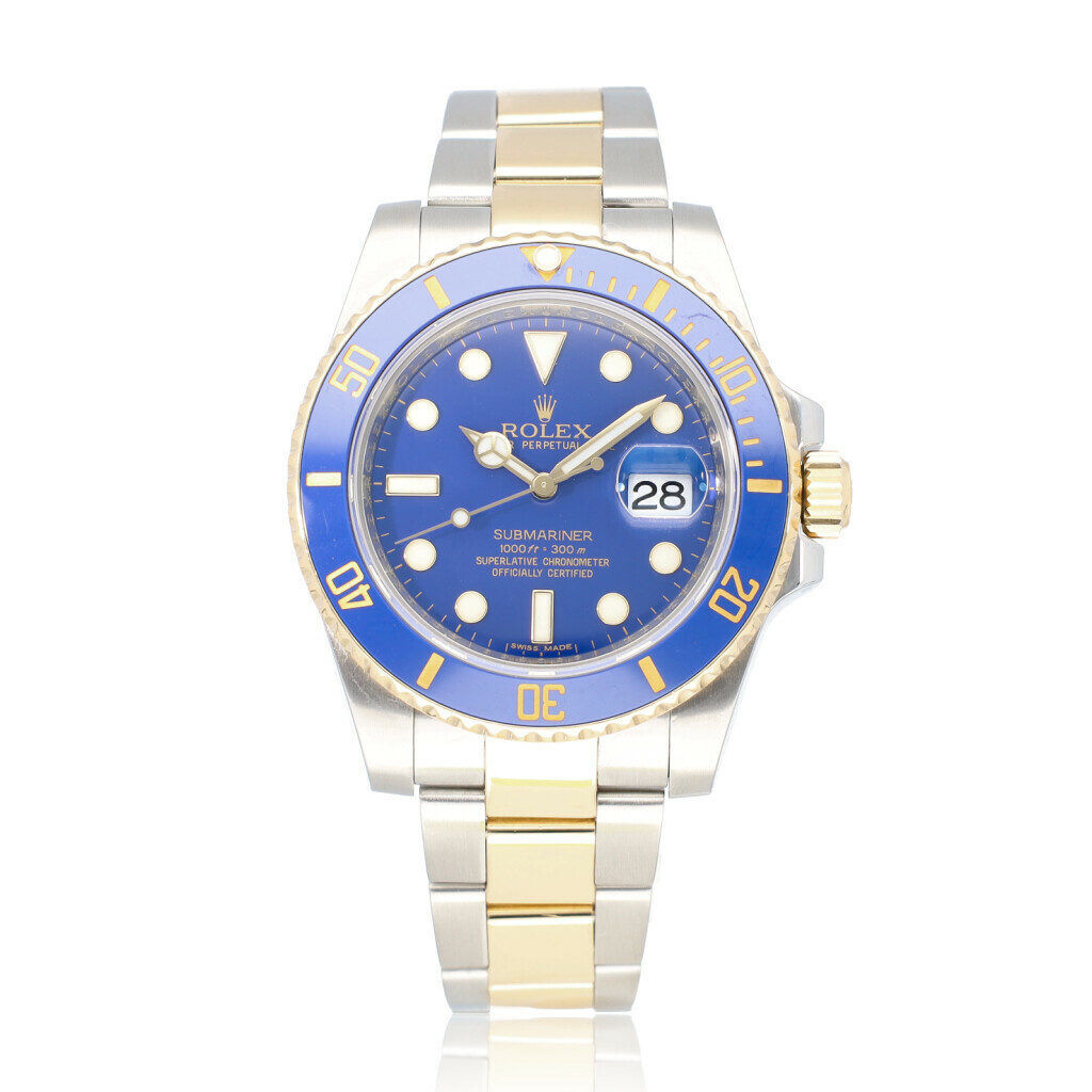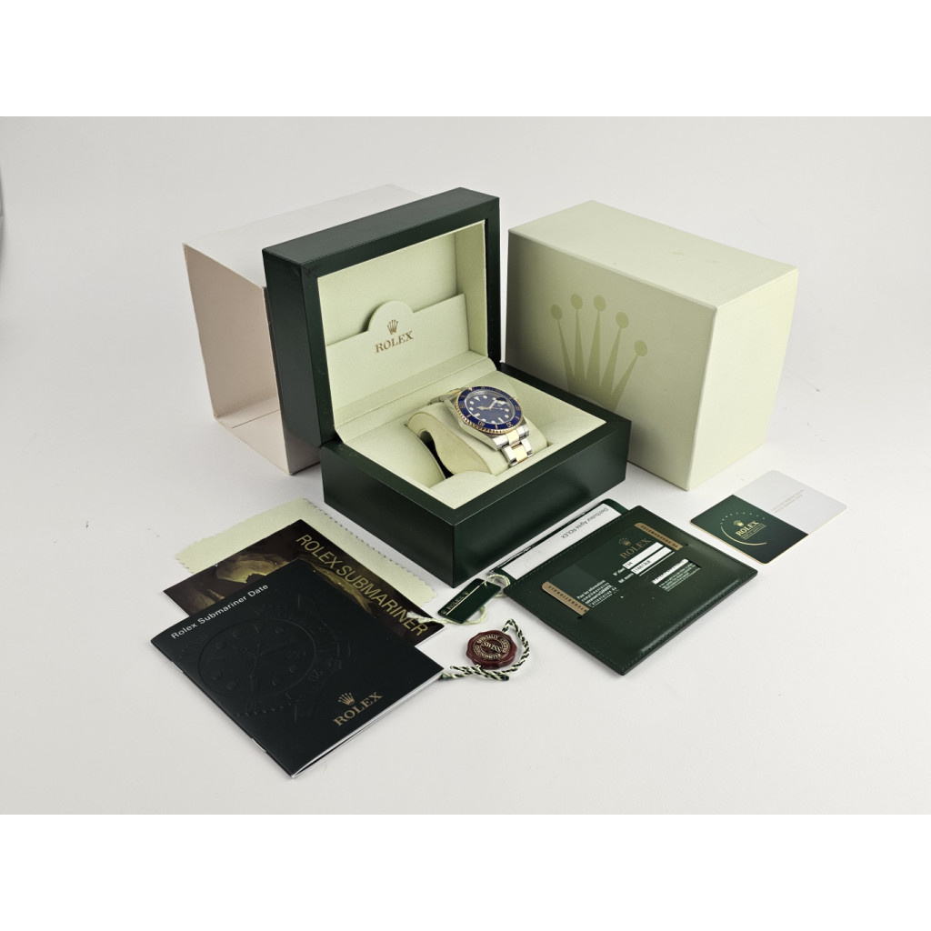 In very good condition Rolex Submariner Date in steel and yellow gold with blue dial from +/- 2008 (V692... serial - no date filled in on certificate) complete with box and papers. Rolex serviced 8-2024 and not worn since. Rolex service certificate included.