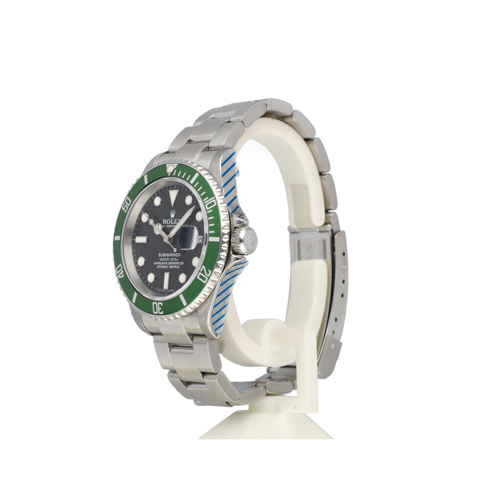 In very good condition Rolex Submariner LV in steel so called 'Kermit' with green bezel, black dial and steel Oyster bracelet from 2006 (Z019... serial) complete with box and papers.
