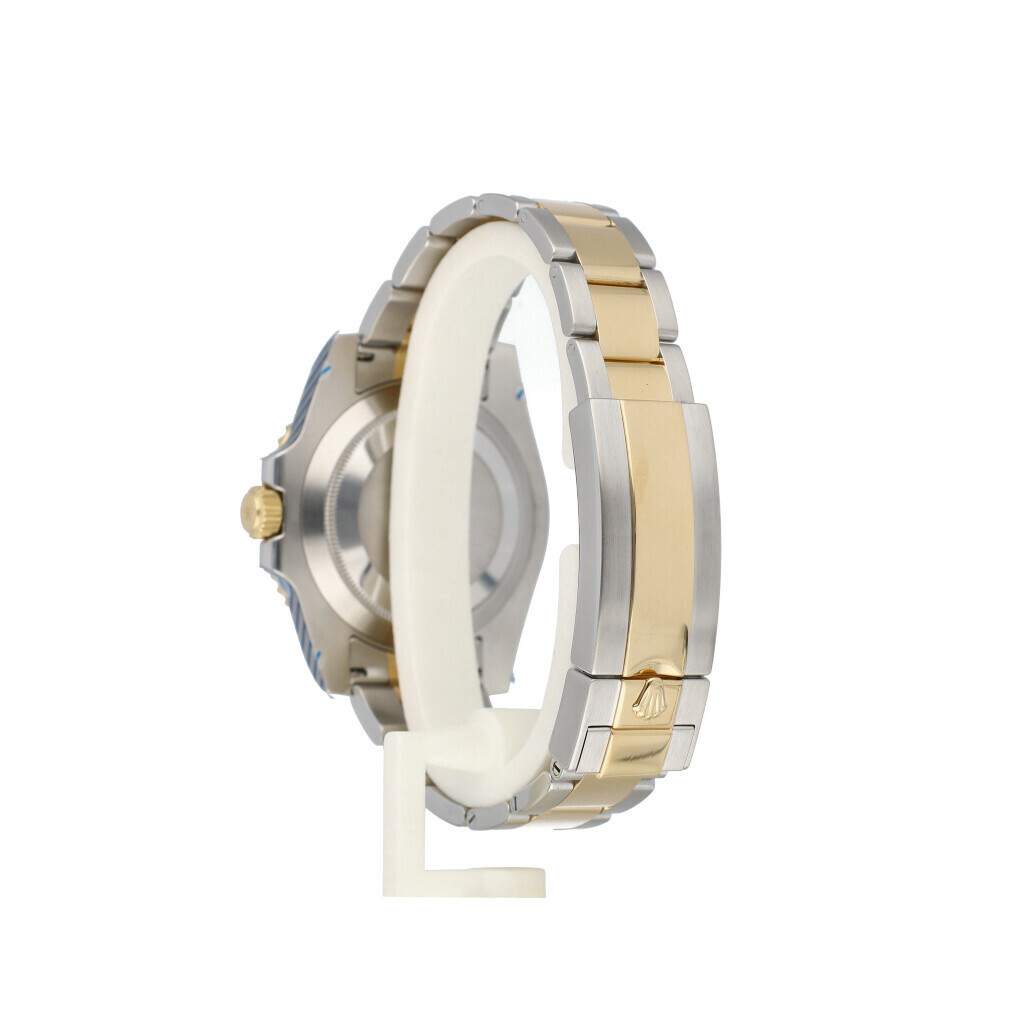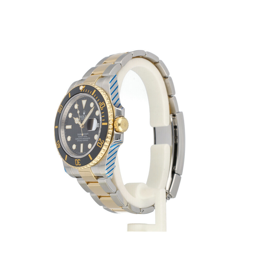 In very good condition Rolex Submariner in steel and yellow gold with black dial, black ceramic bezel and steel and yellow gold Oyster bracelet from 2010 complete with box and papers.