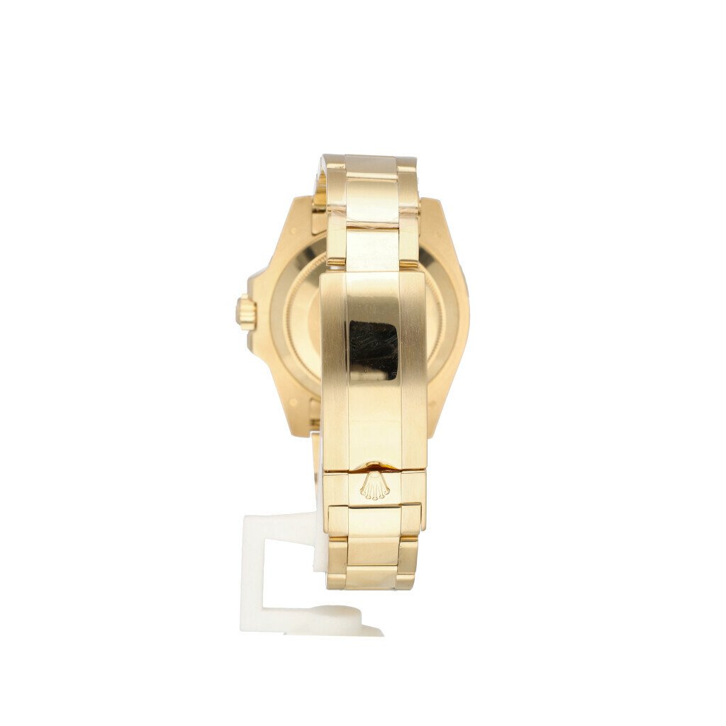 In very good condition Rolex Submariner Date in yellow gold so called 'bluesy' with blue dial, ceramic blue bezel and yellow gold Oyster bracelet from 2015 complete with box and papers. Rolex serviced 4-2025 and not worn since. Rolex service certificate included.