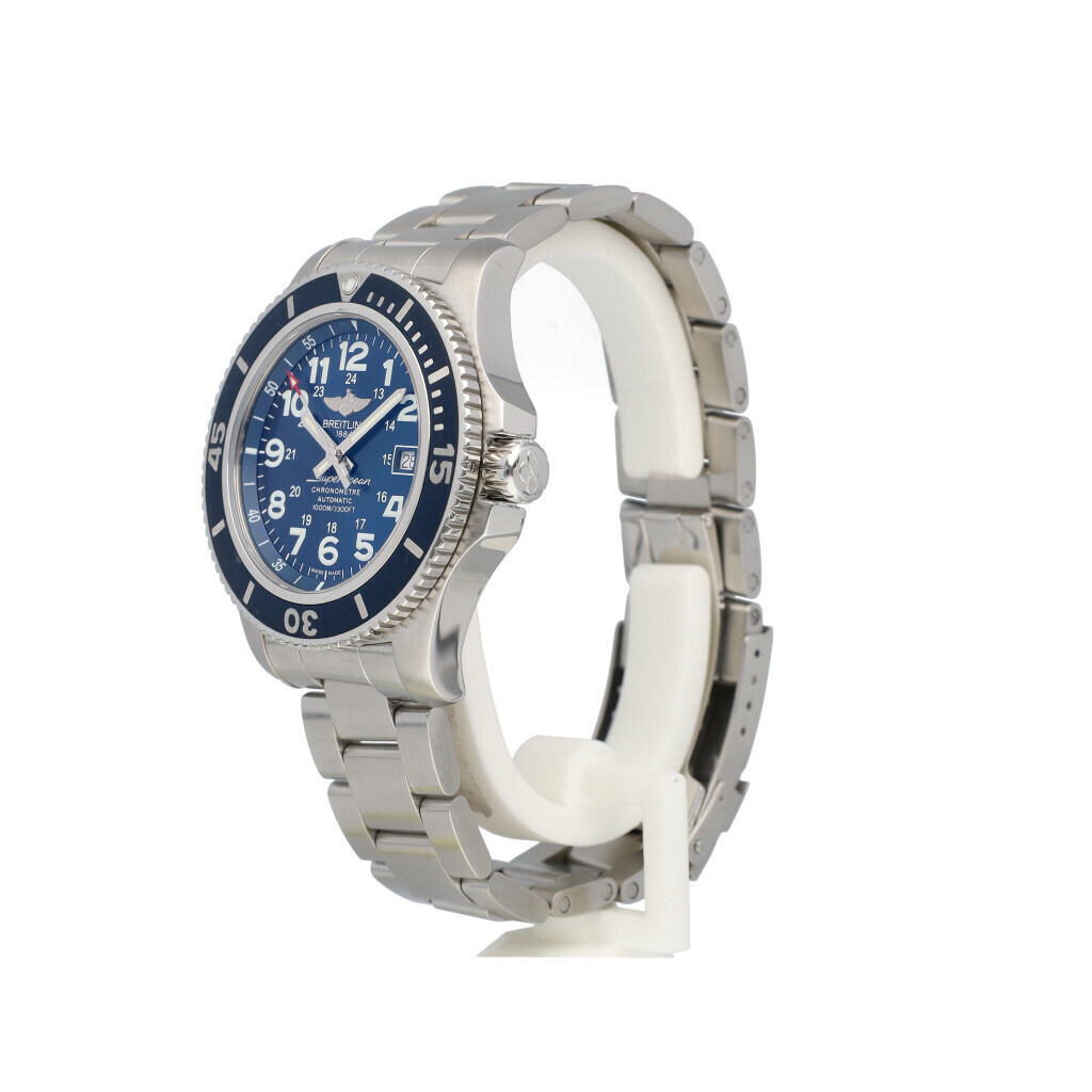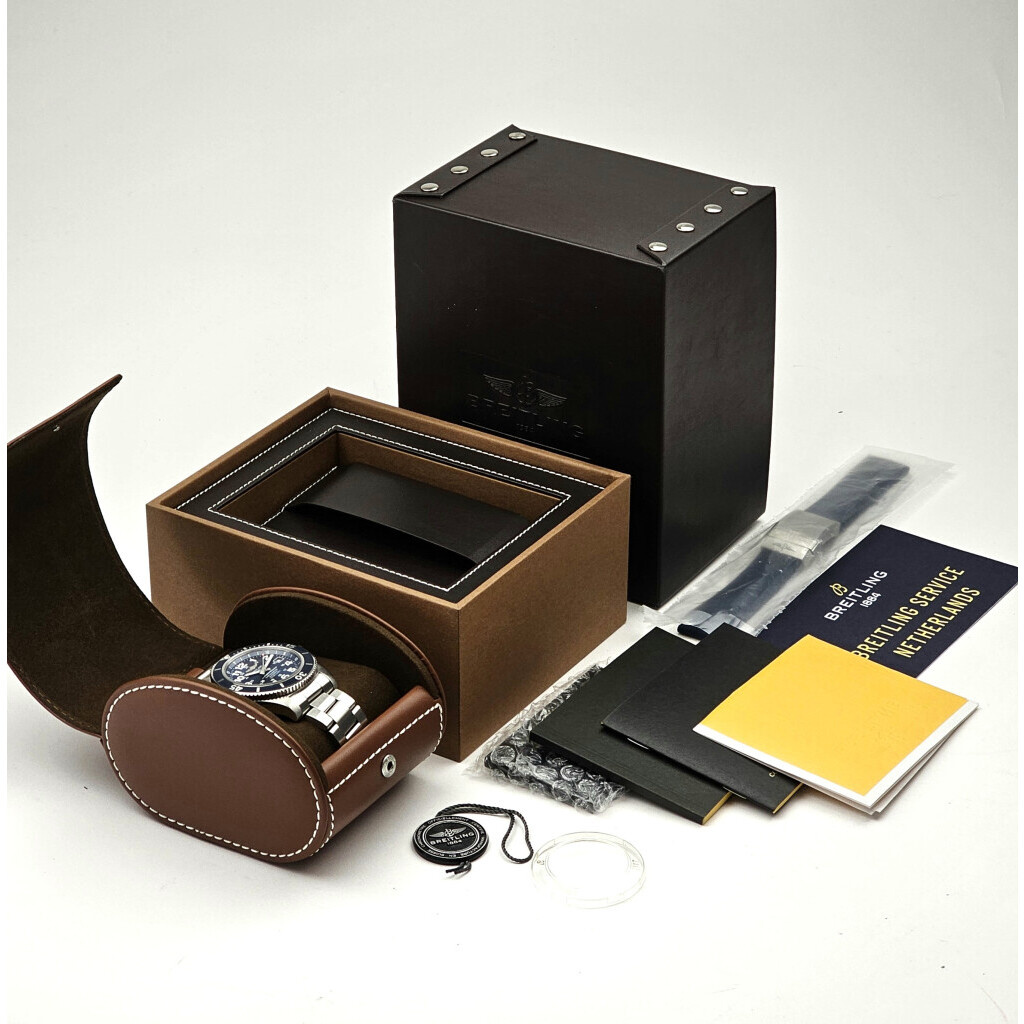 In very good condition Breitling Superocean II 44mm in steel with blue dial from 2019 complete with box and papers. Breitling serviced 3-2025 and not worn since. Breilting service certificate included.
