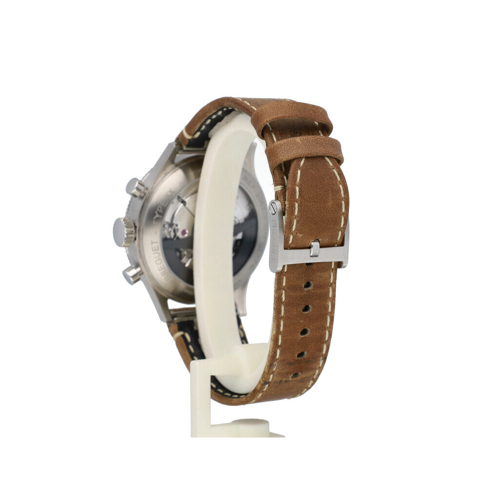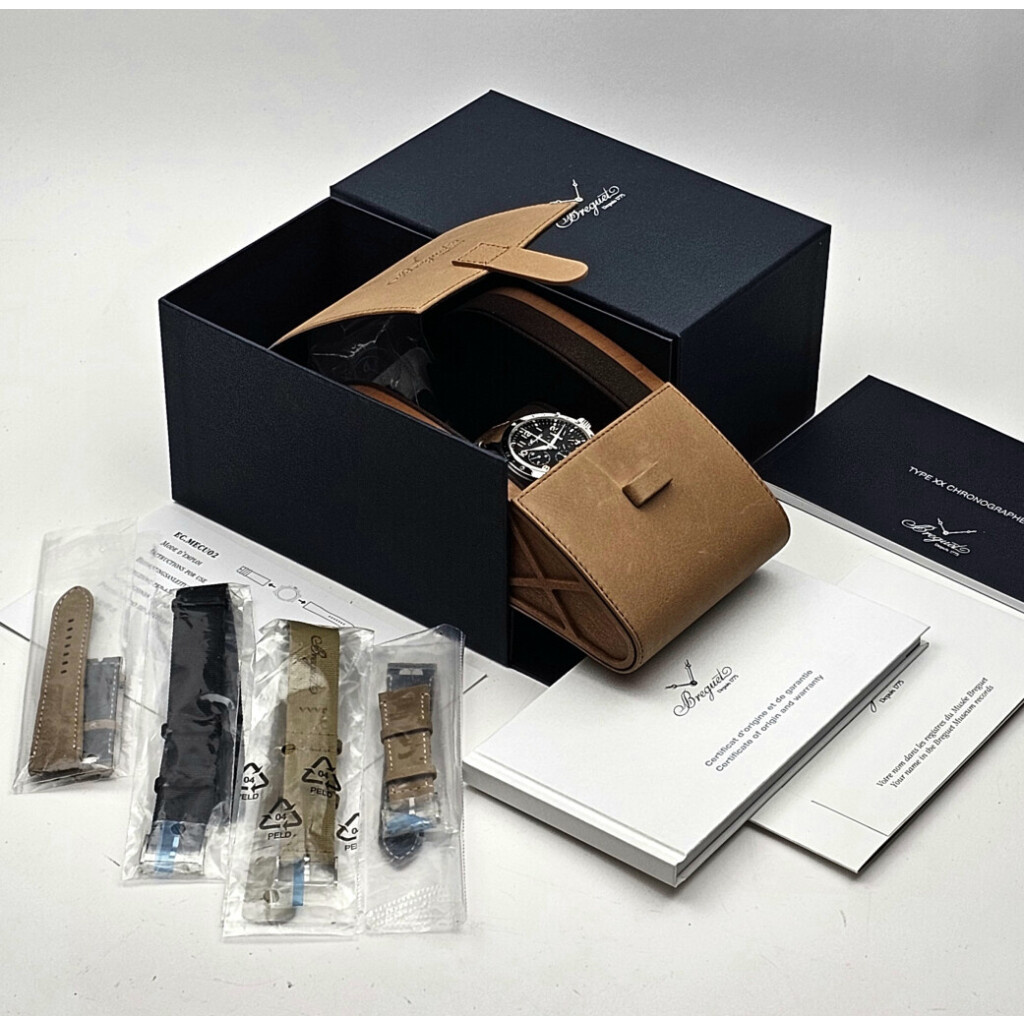 In very good condition Breguet Type XX Chronograph in steel with black dial from 2024 complete with box, papers and 4 extra straps.