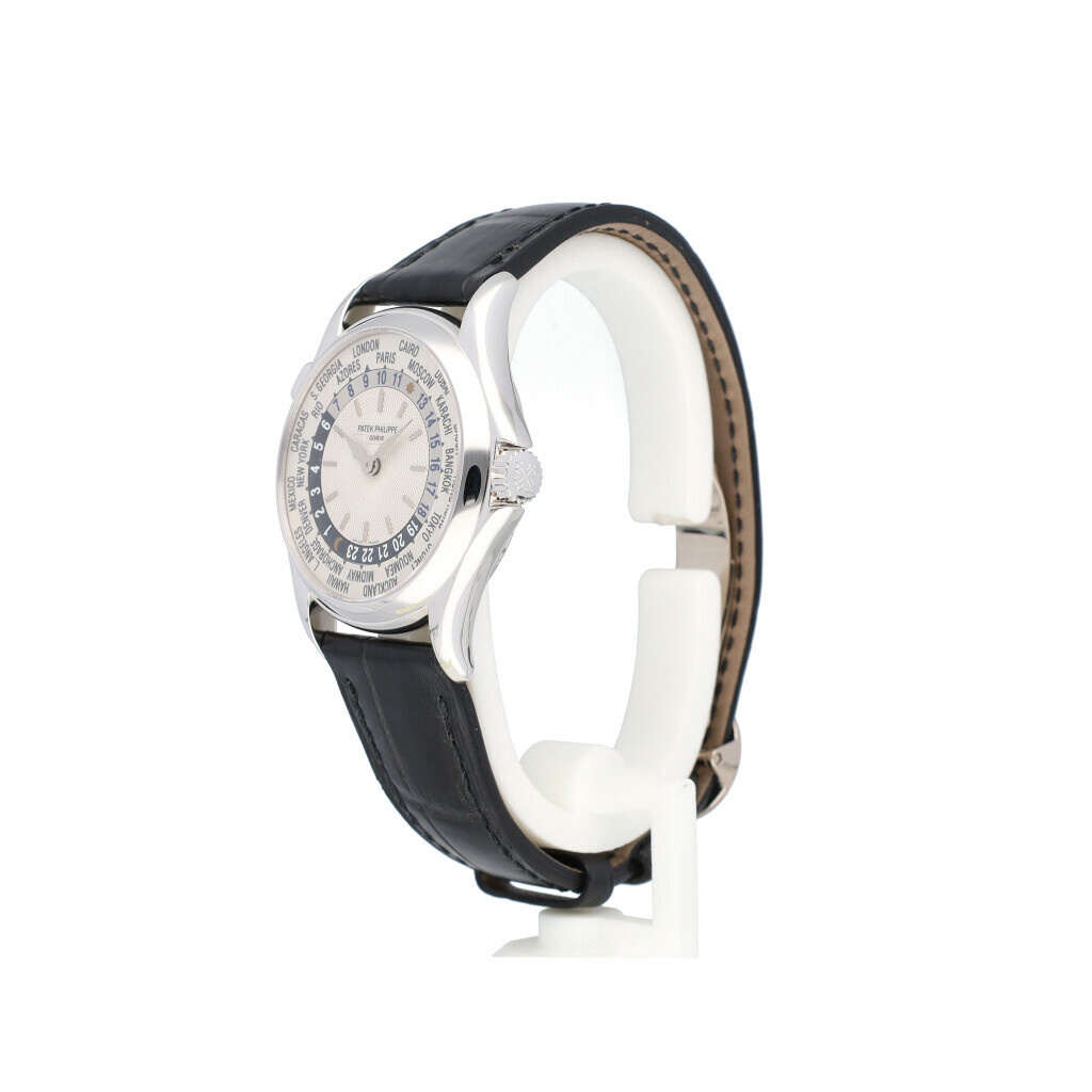 In very good condition Patek Philippe World Time in wite gold with leather strap from 2005 complete with box and papers. Patek serviced 1-2025 for € 5.268,34 including new strap and not worn since. Patek service seal included.