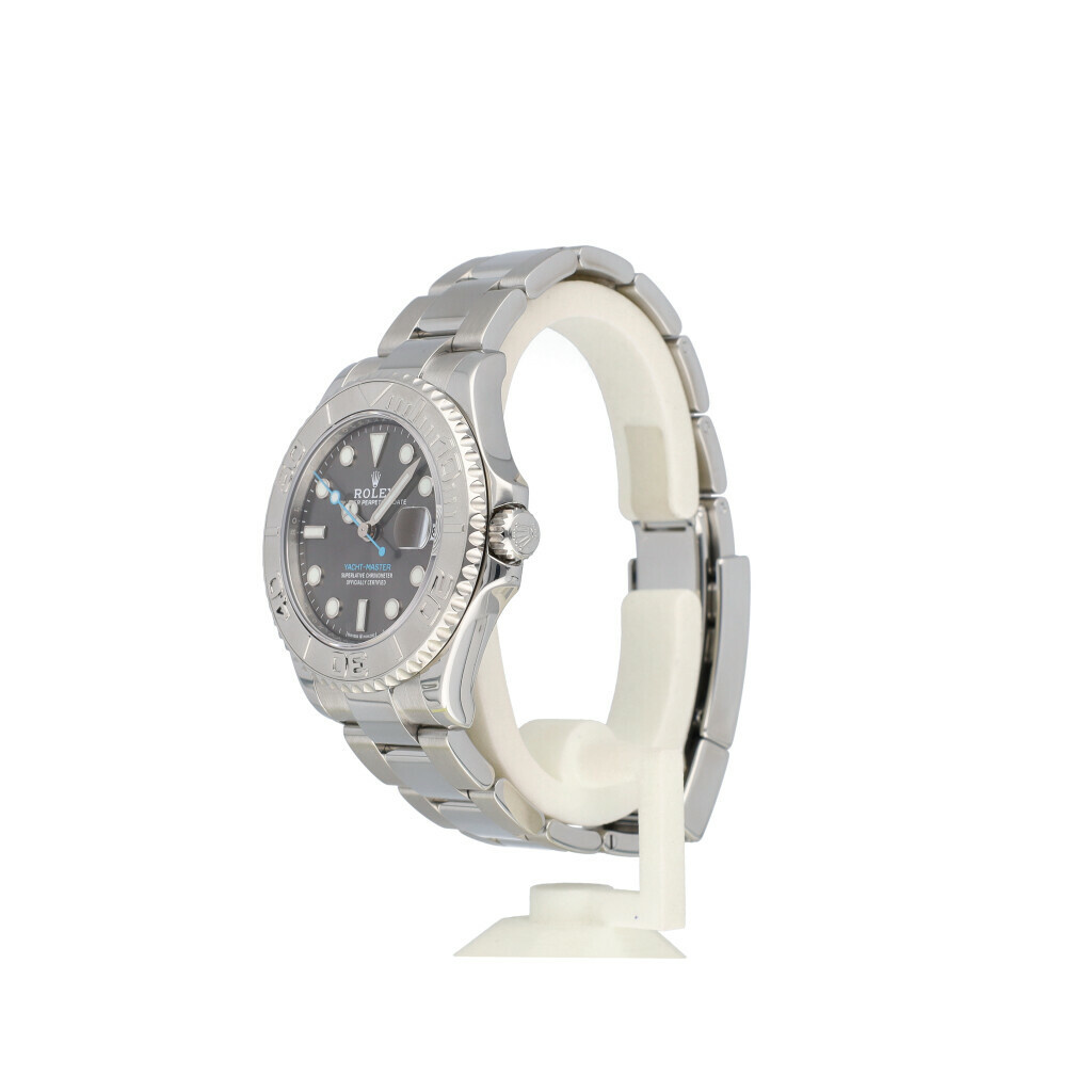 In very good condition Rolex Yacht-Master medium in steel and platinum, with platinum bezel, grey / slate dial and steel Oyster bracelet from 2019 complete with box and papers.