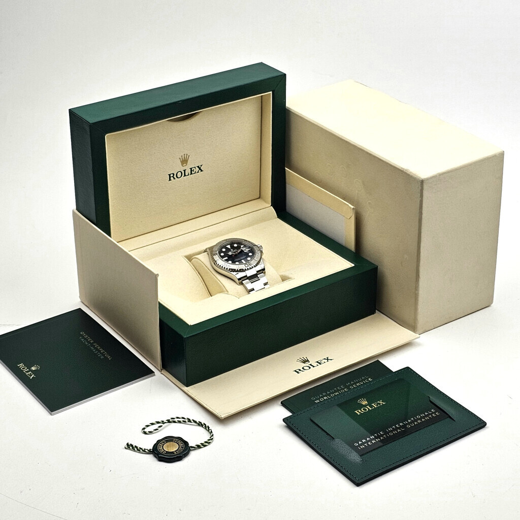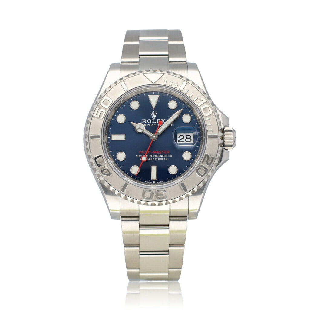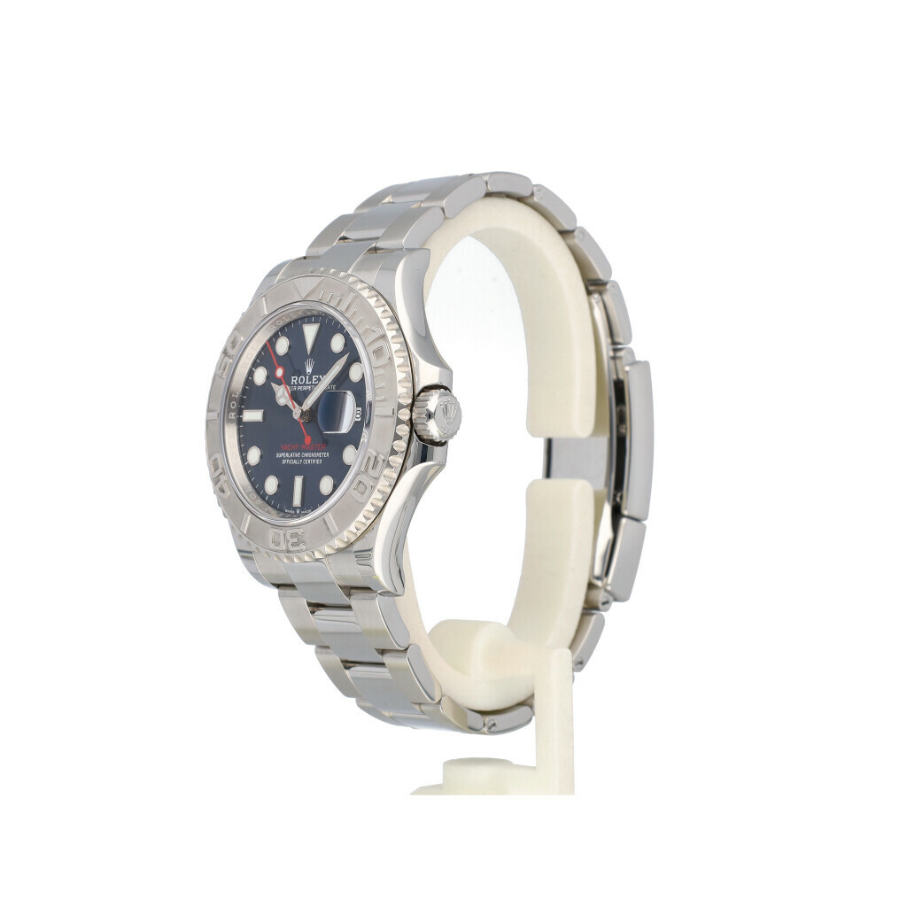 In very good condition Rolex Yacht-Master with blue dial, platinum bezel and steel Oyster bracelet from 2022 complete with box and papers.