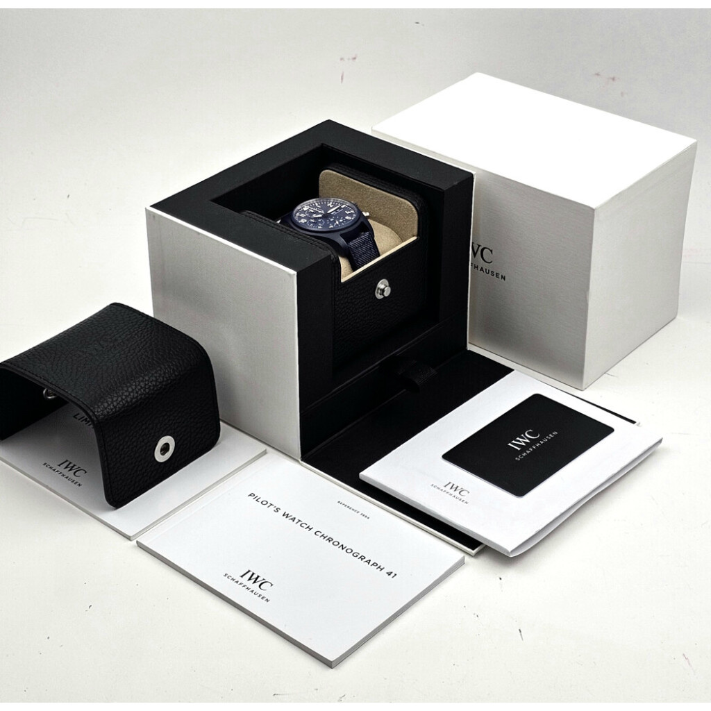 In very good condition IWC Pilot Chronograph in blue ceramic from 2023 complete with box and papers.