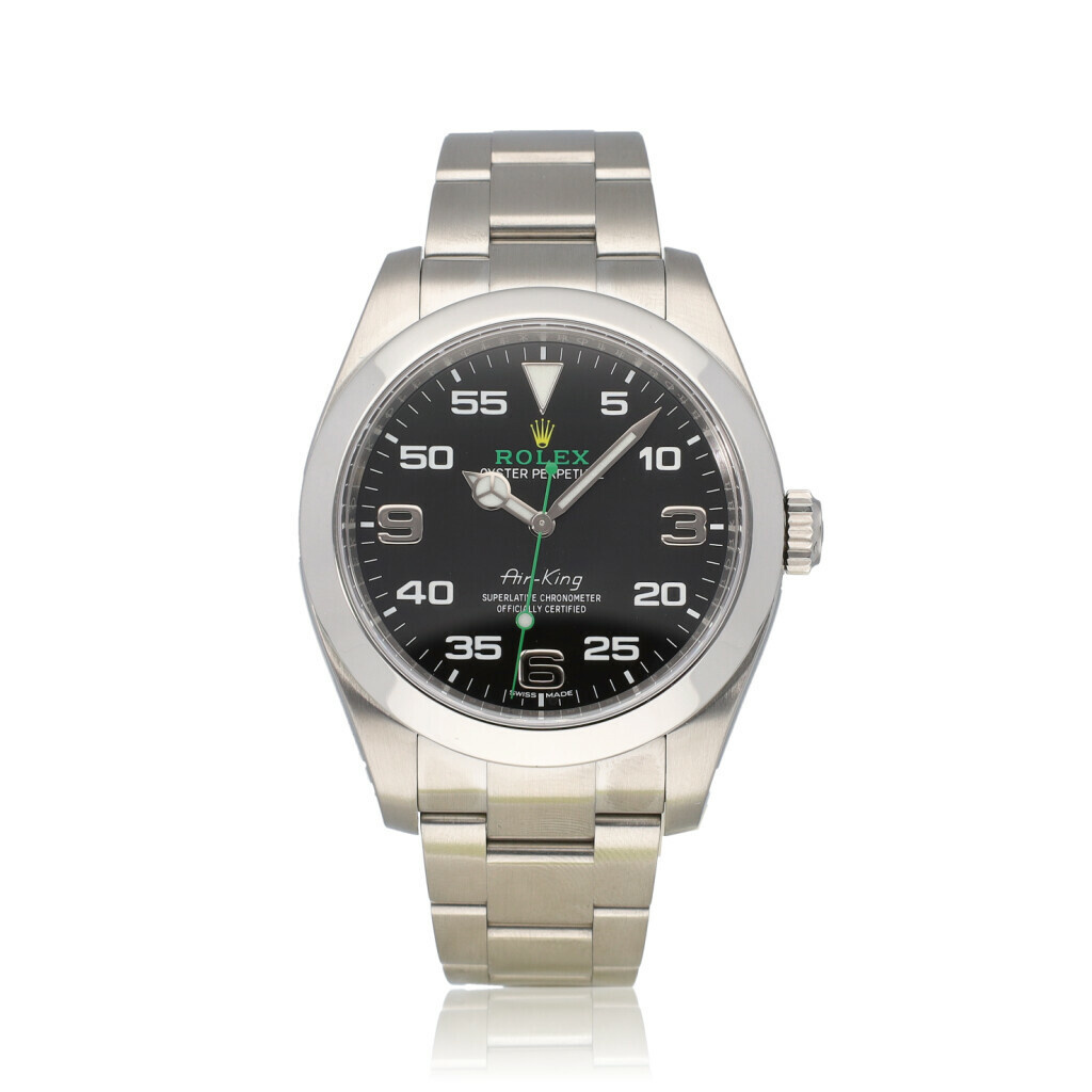 In very good condition Rolex Air-King 40 mm in steel with black dial, steel domed bezel and steel Oyster bracelet. No box and/or papers.