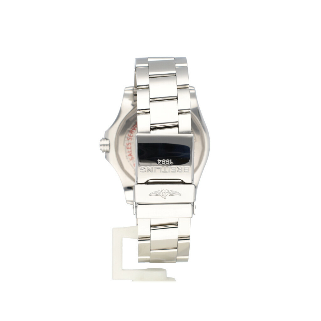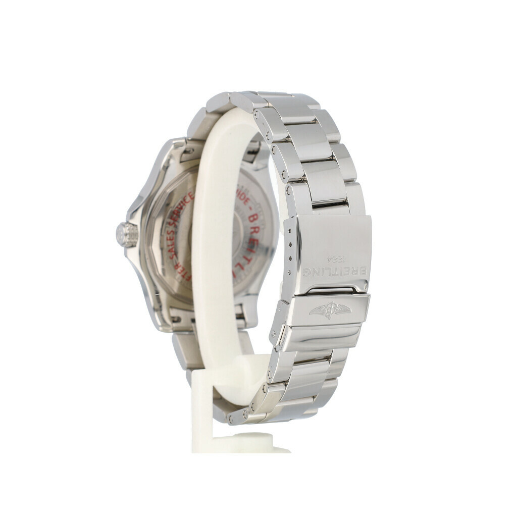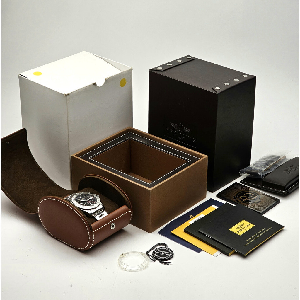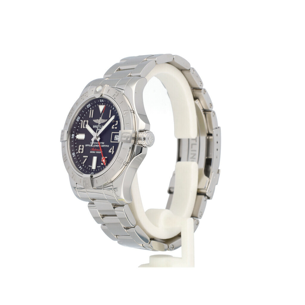 In very good condition Breitling Avenger GMT in steel with black dial and steel Breitling bracelet from 2019 complete with box and papers. Breitling serviced 5-2025 and not worn since. Breitling service certificate included.