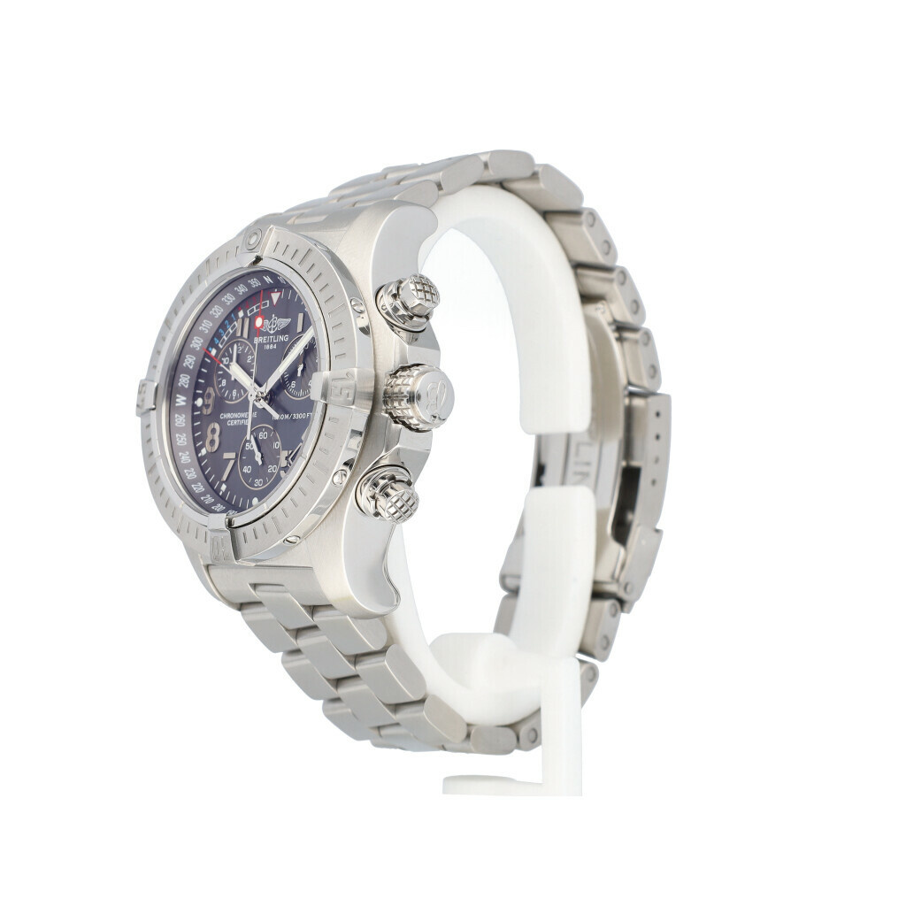 In very good condition Breitling Avenger Seawolf Chrono in steel with grey dial no box and/or papers. Breitling serviced 6-2024 and not worn since. Breitling service certificate included.