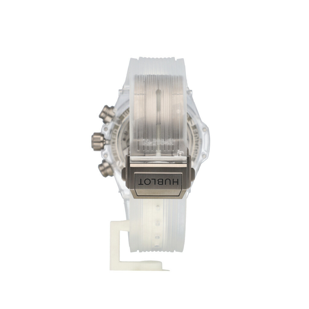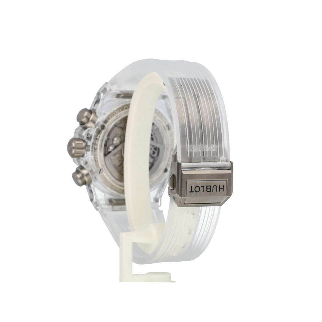 In very good condition, Hublot Big Bang Unico Sapphire Perpetual Calendar skeletonized in Sapphire complete with box and papers.