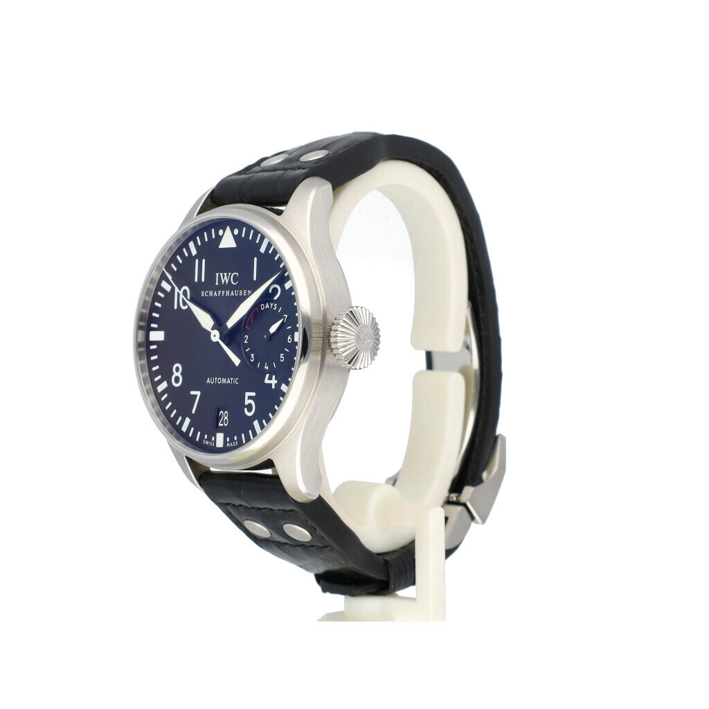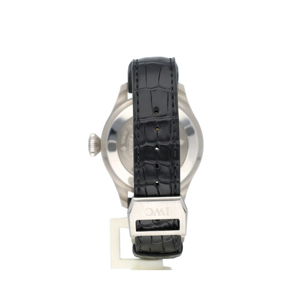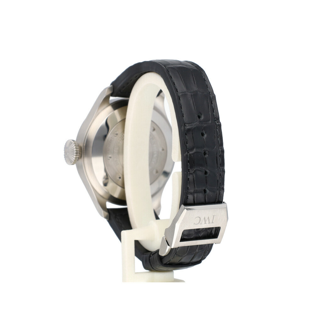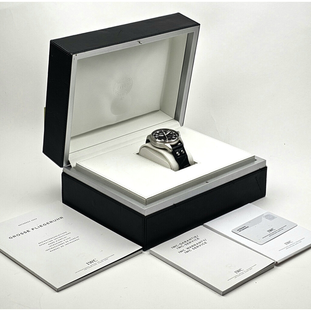 In very good condition IWC Big Pilot in steel with black dial and as good as new IWC balck strap from 2013 complete with box and papers.