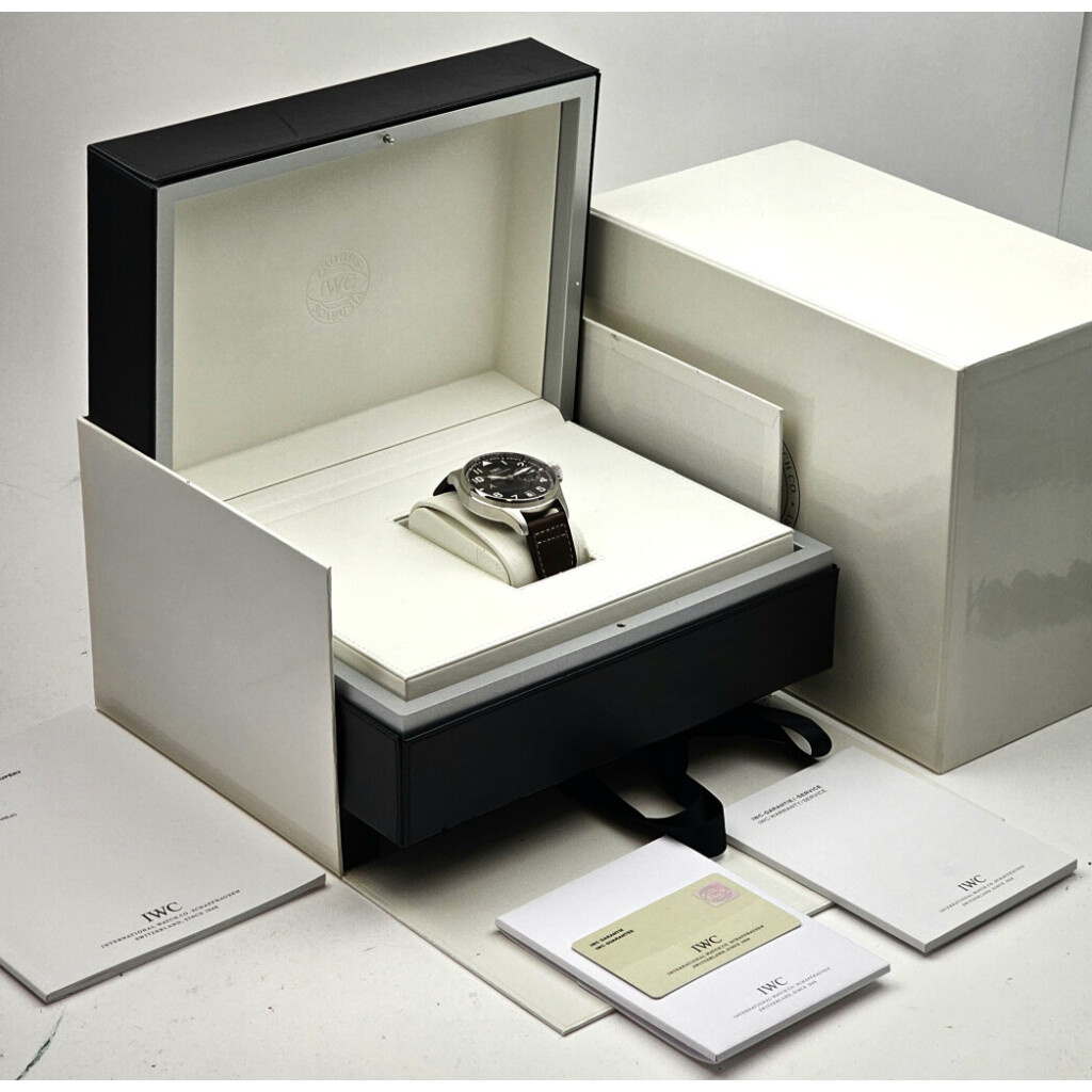 In very good condition IWC Big Pilot Saint Exupery in steel with brown / chocolate coloured dial from 2010 complete with box and papers. Limited edition of 1149 piece worldwide.