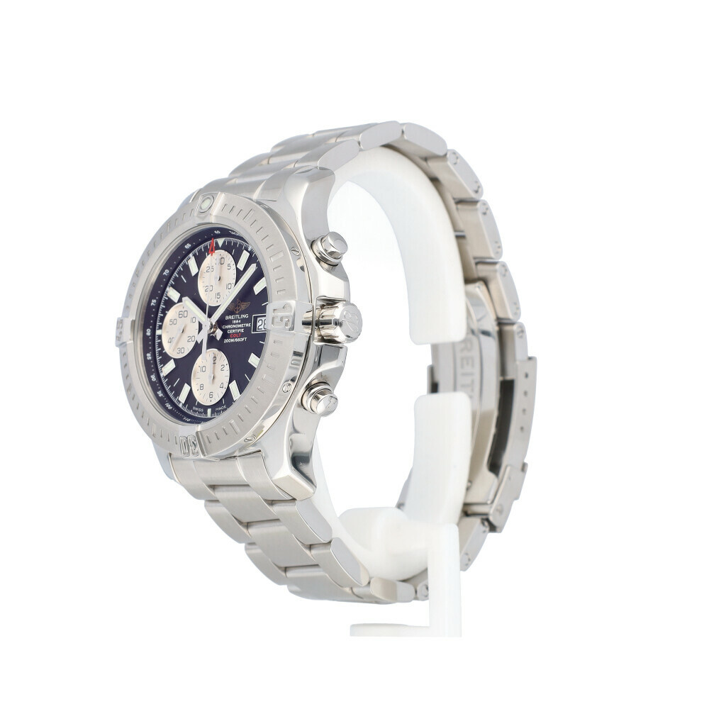 In very good condition Breitling Colt Chronograph Automatic in steel with black dial and steel bracelet from 2019 complete with box and papers.