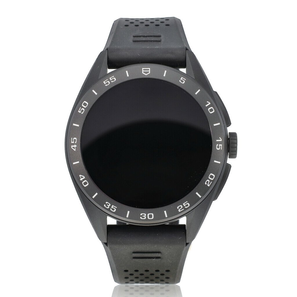 In very good condition TAG Heuer Connected Calibre E4 in ceramic with OLED screen and Qualcomm processor. Black rubber TAG Heuer strap + red TAG Heuer strap included. Complete with box and papers.
