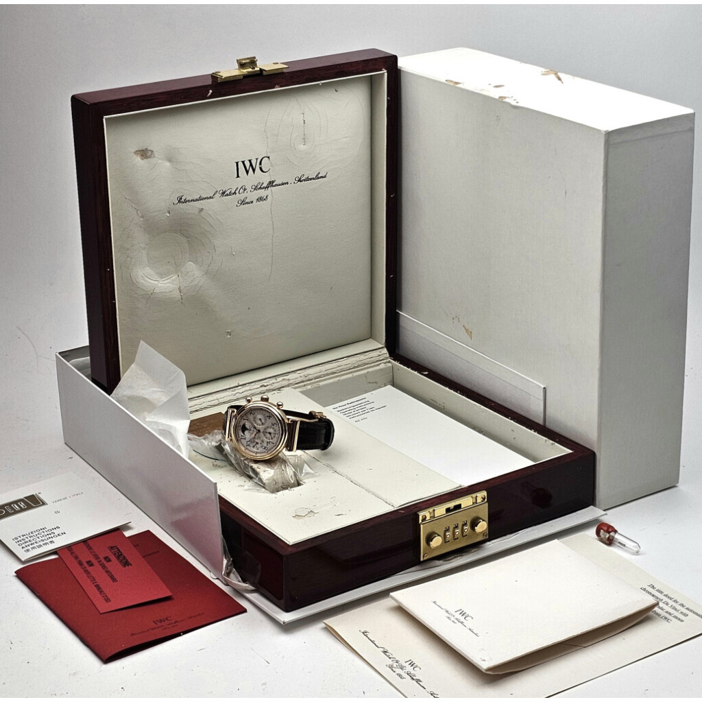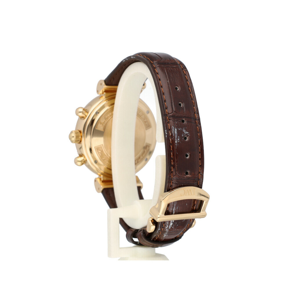 In very good condition IWC Da Vinci Perpetual Calendar in rose gold with creme coloured dial and brand new alligator leather IWC strap complete with box, no papers. IWC serviced 9-2025 including new IWC brown alligator strap and not worn since. IWC service papers included.