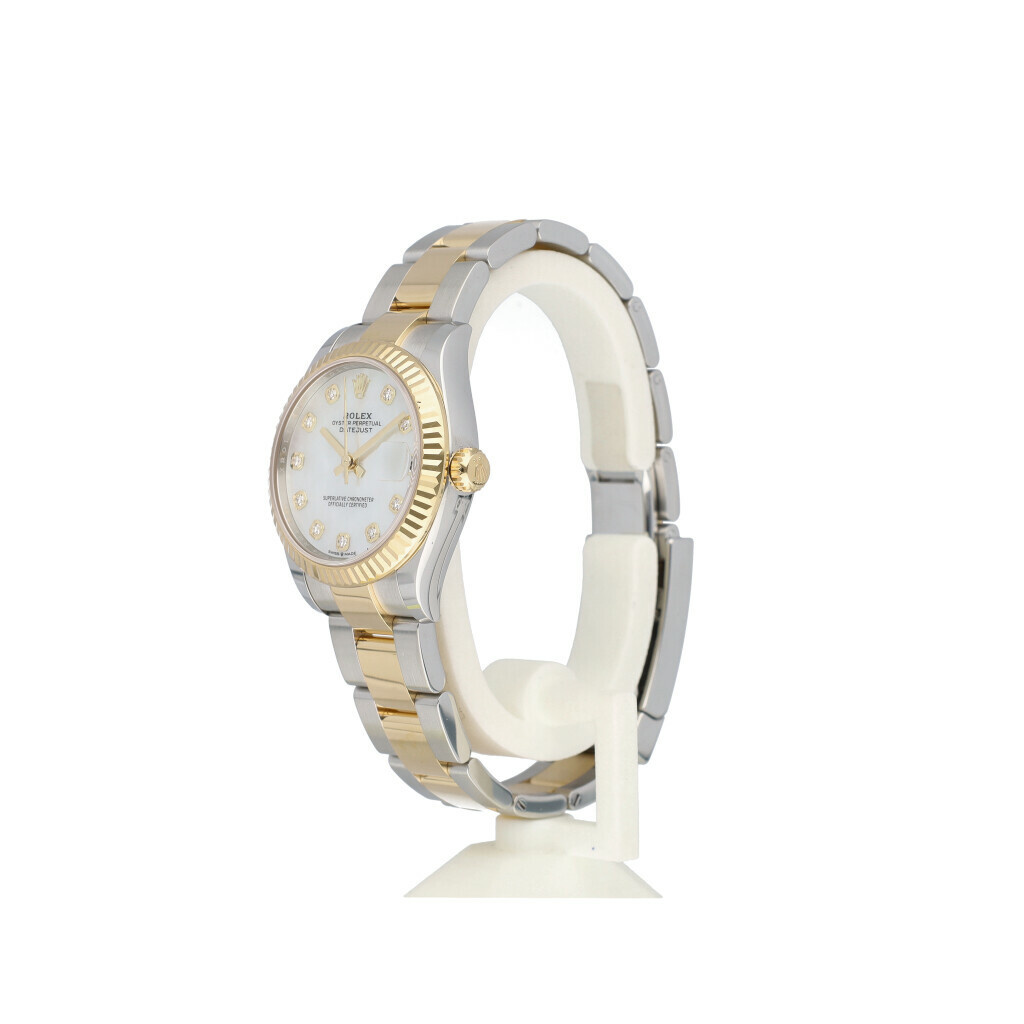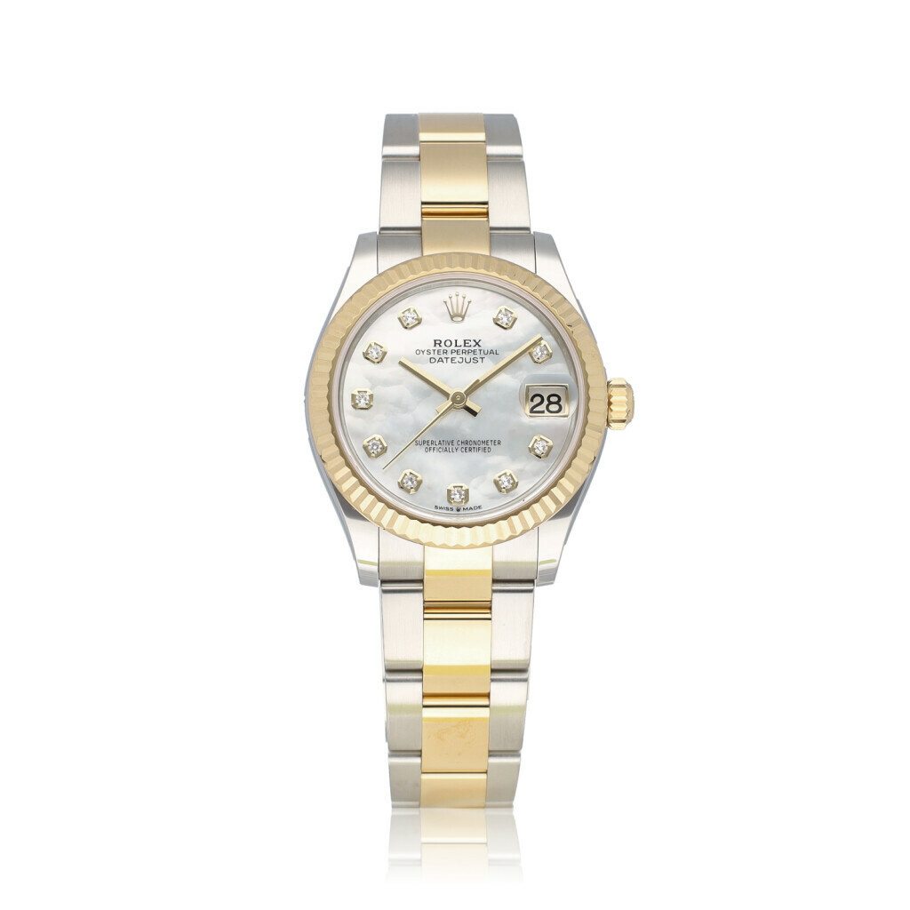 In very good condition Rolex Datejust 31 in steel and yellow gold with factory MOP diamond dial and steel and yellow Oyster bracelet from 2024 complete with box and papers.