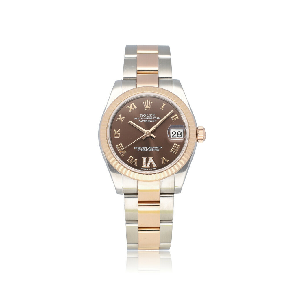 Would you like a non-committal viewing for this Rolex Datejust 31 steel - rose gold brown roman IV 2016 B+P | NEW ROLEX SERVICE?