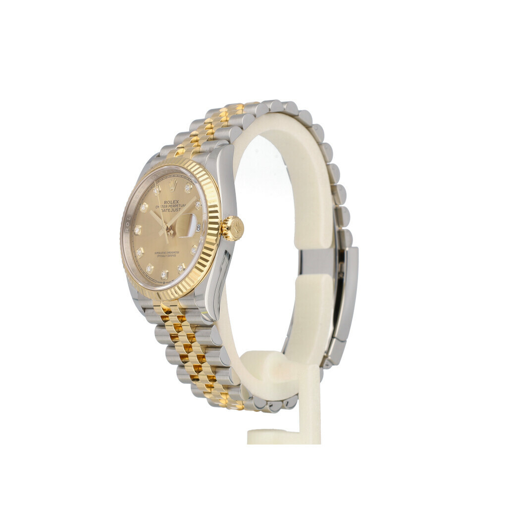 In very good condition Rolex Datejust 36 in steel and yellow gold with factory champagne diamond dial, yellow gold fluted bezel and steel and yellow gold Jubilee bracelet from 2021 complete with box and papers.