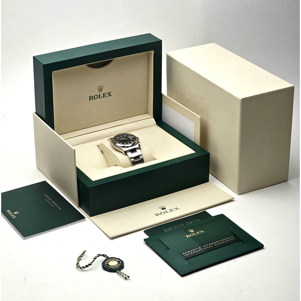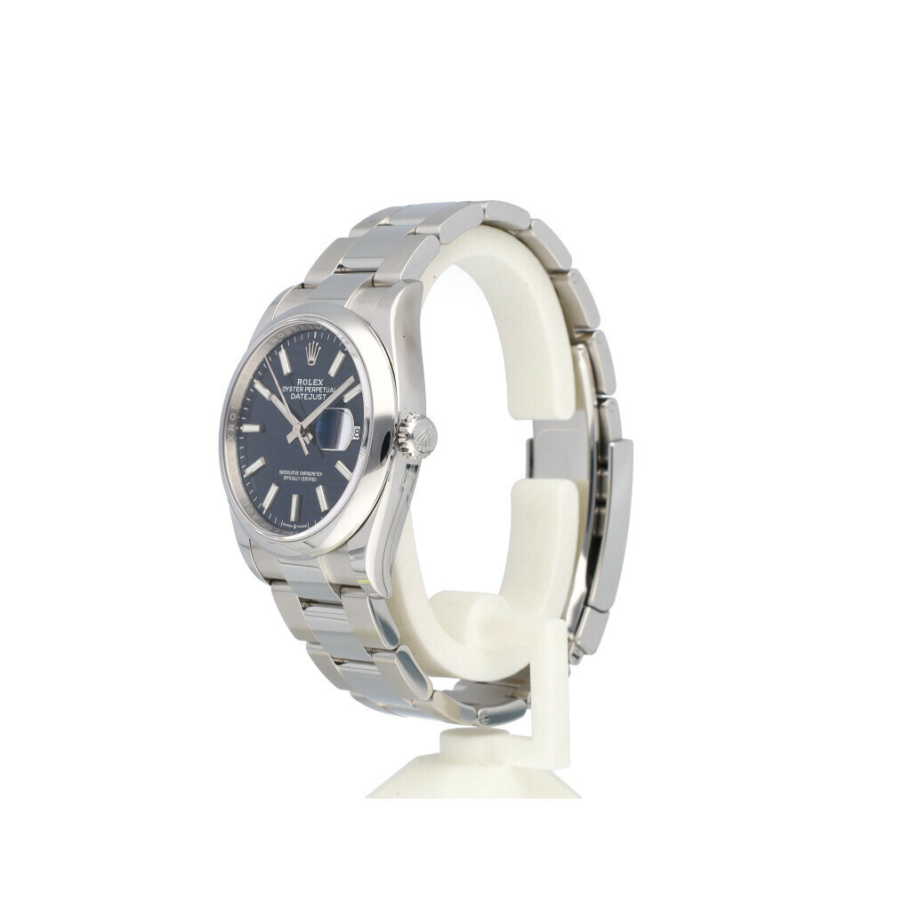 In very good condition Rolex Datejust 36 in steel with blue so called 'fluted / motif / block' dial, steel domes bezel and steel Oyster bracelet from 2023 complete with box and papers