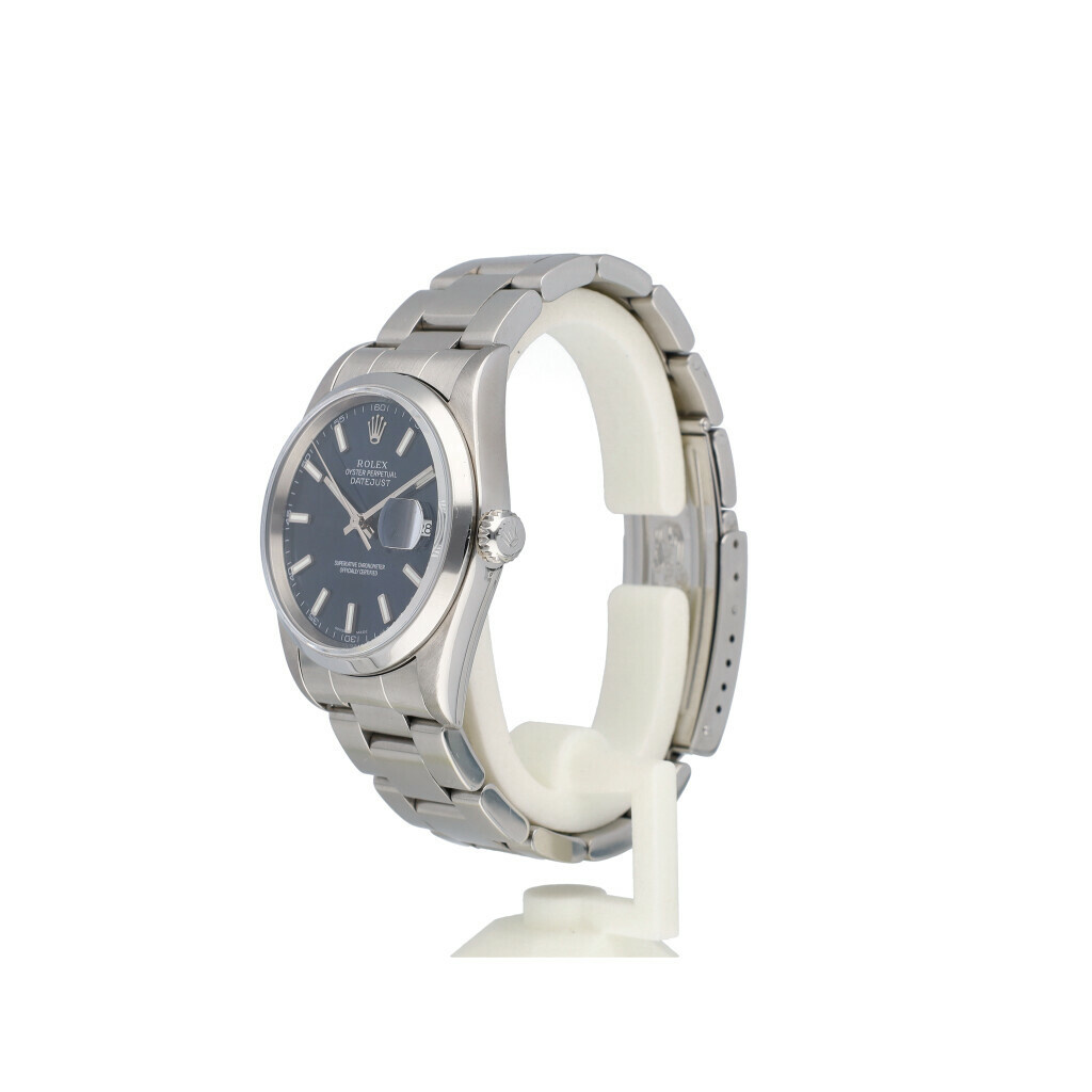 In very good condition Rolex Datejust 36 in steel with blue dial, steel domes bezel and Oyster bracelet from +/- 1999 (A888... serial). No box and/or papers. Rolex serviced 10-2025 and not worn since. Rolex service certificate included.