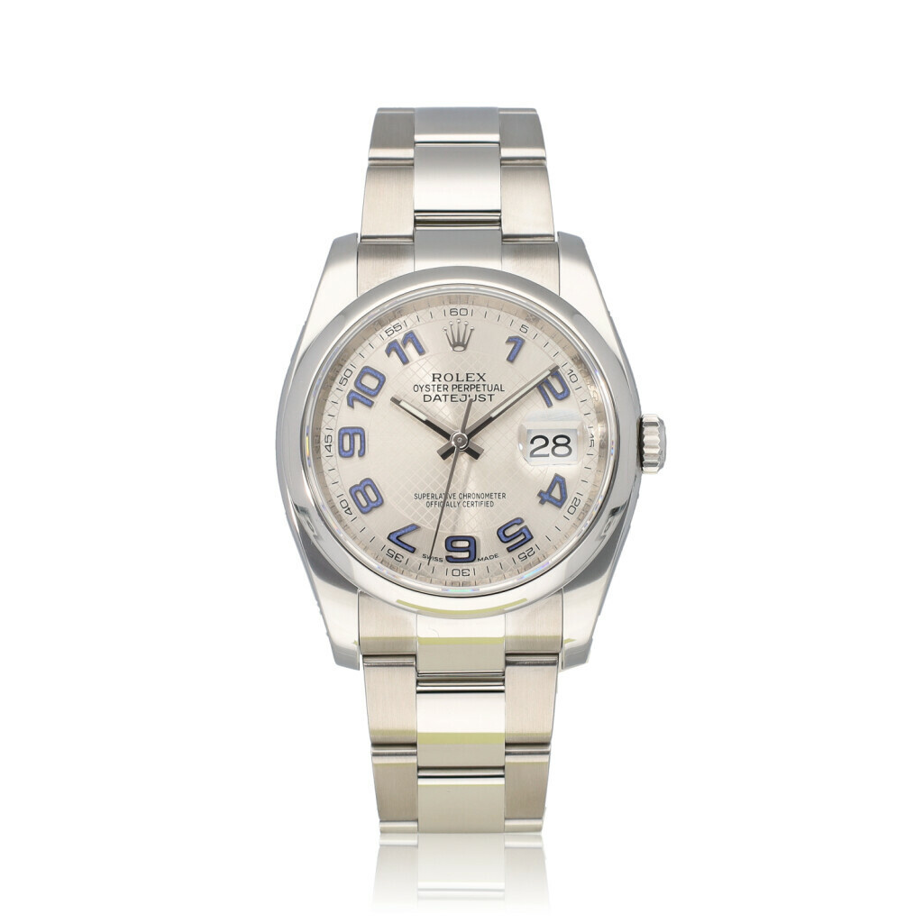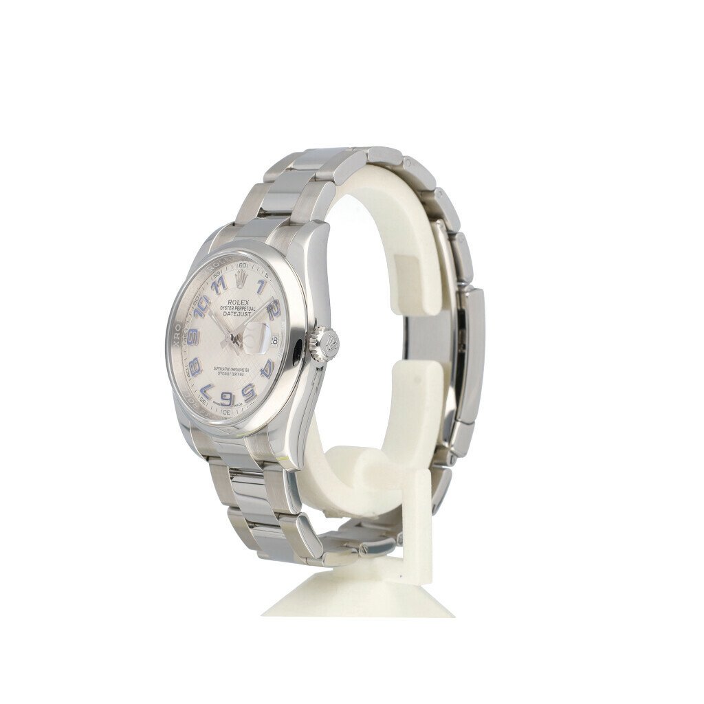 In very good condition Rolex Datejust 36 in steel with so called silver deco arabic dial with mesh pattern, steel domed bezsel and steel Oyster bracelet from 2017 complete with papers, no box.