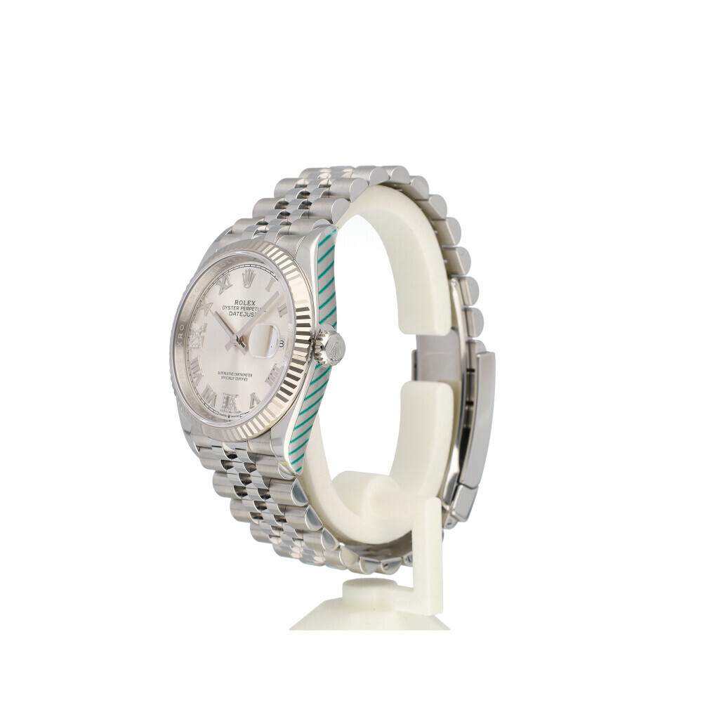 In very good condition Rolex Datejust 36 in steel with silver roman VI\IX diamond dial and Jubilee bracelet from 2024 complete with box and papers. Rolex serviced 10-2025 and not worn since. Rolex service certificate included.