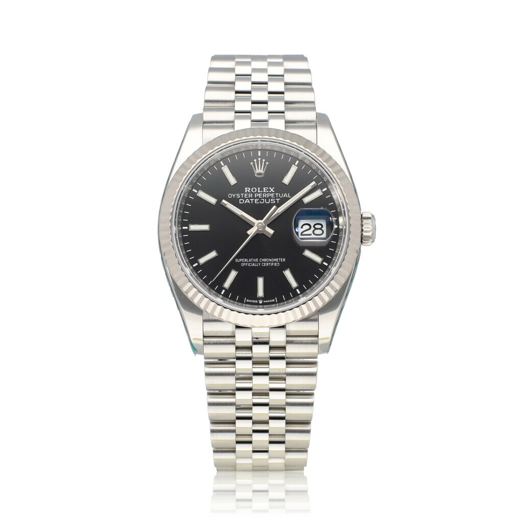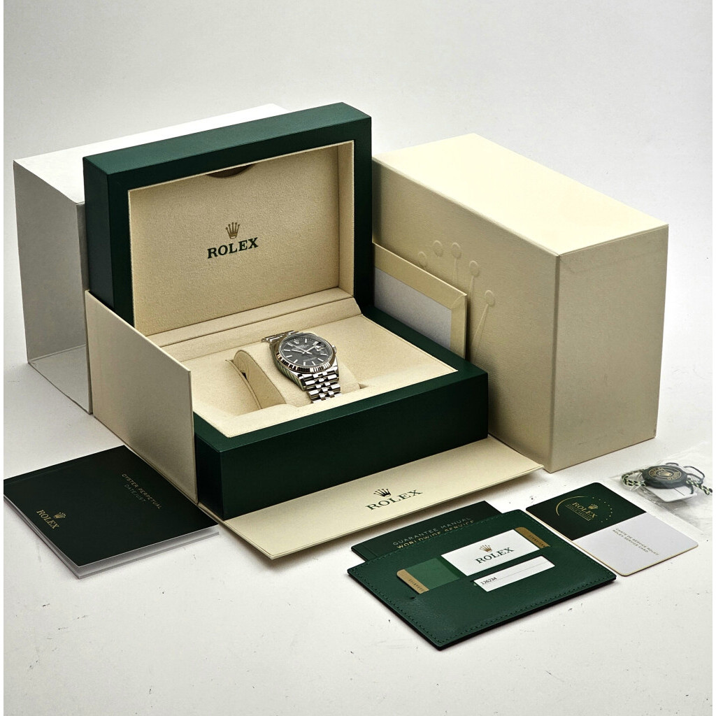In very good condition Rolex Datejust 36 in steel with black dial and Jubilee bracelet from 2019 complete with box and papers. Rolex serviced 6-2025 ad not worn since. Rolex serviced 6-2025 and not worn since.