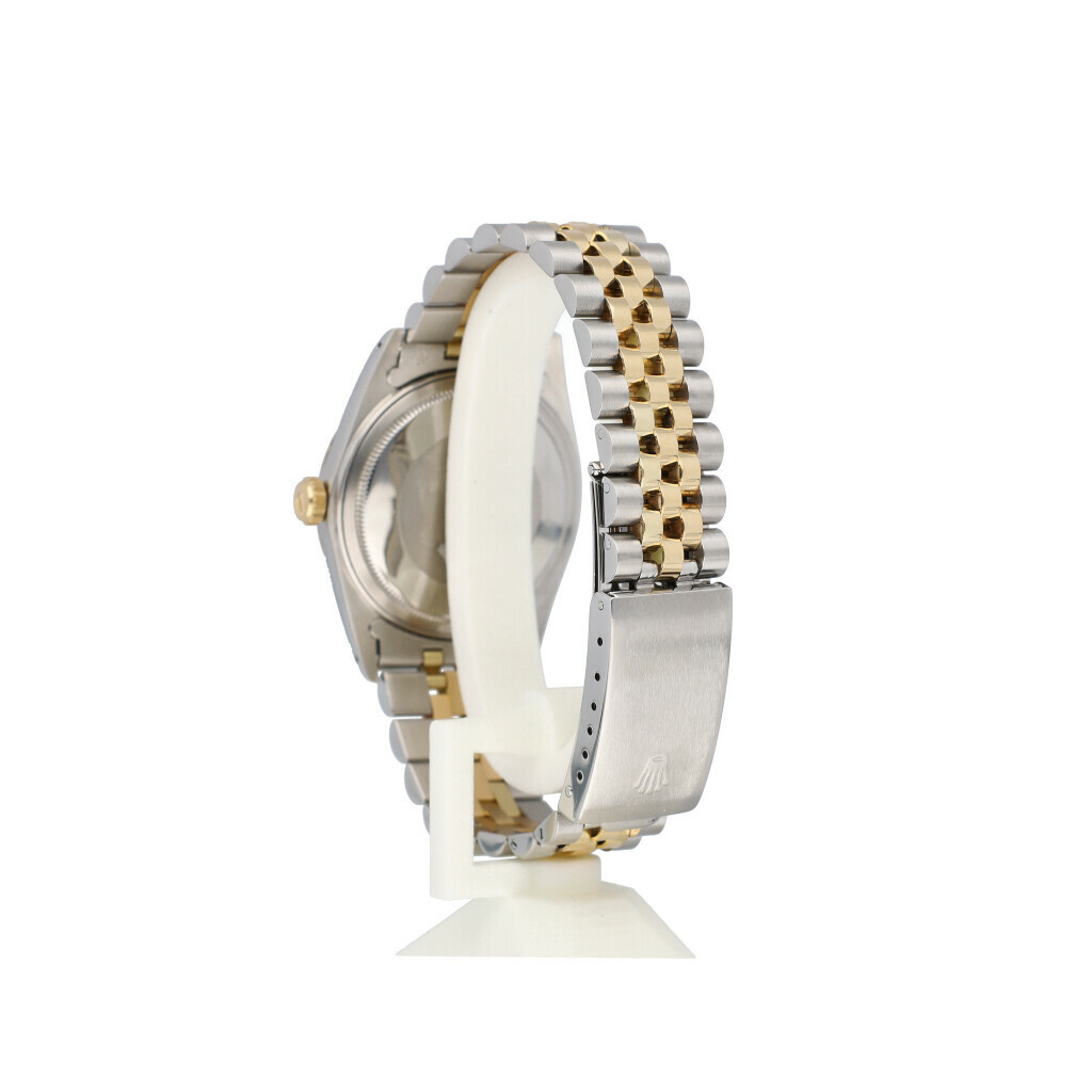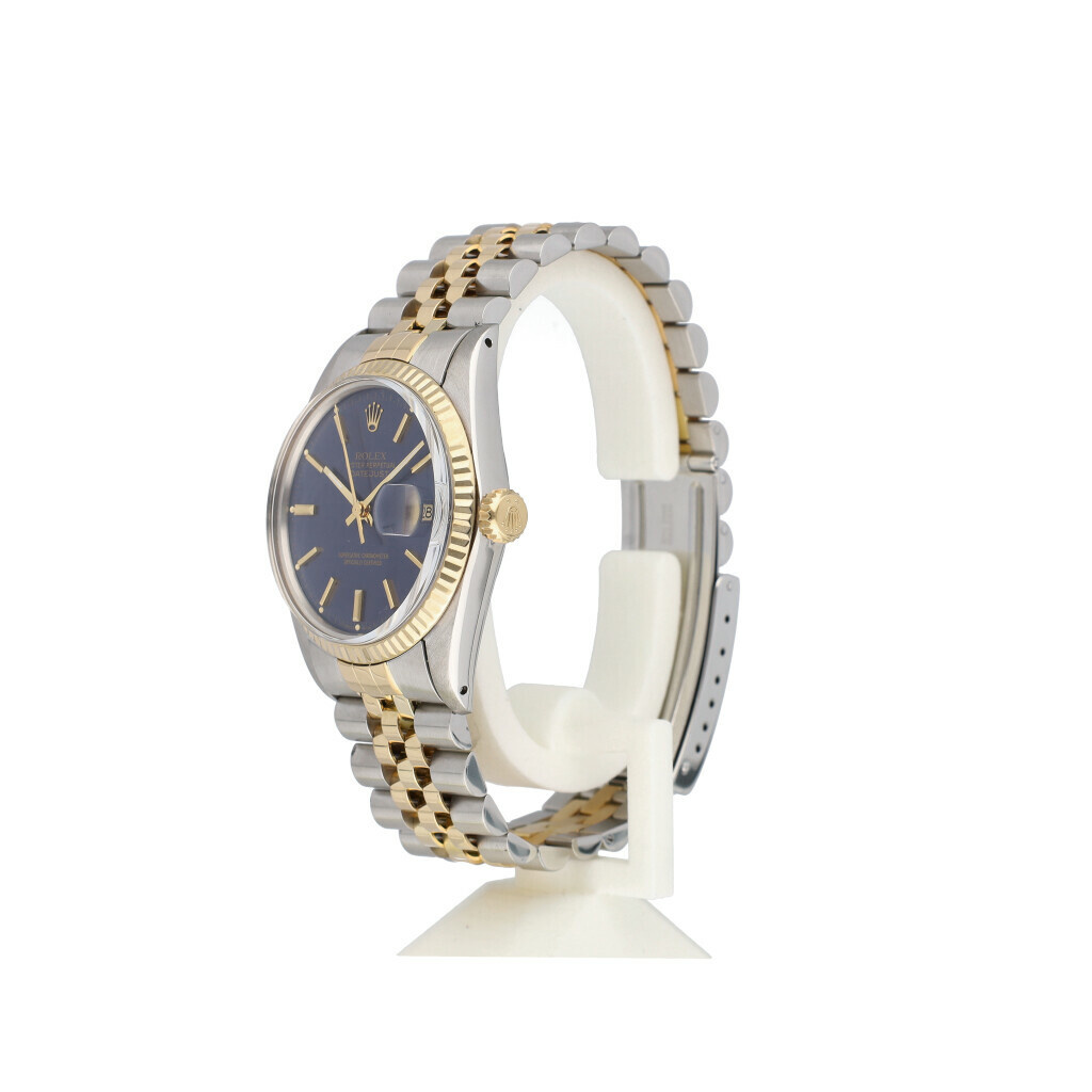 In very good condition Rolex Datejust 36 in steel and yellow gold with yellow gold fluted bezel, rare matte blue dial and tight steel and yellow gold Jubilee bracelet from +/- 1979 (6410.. serial). No box and/or papers.