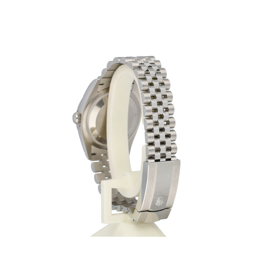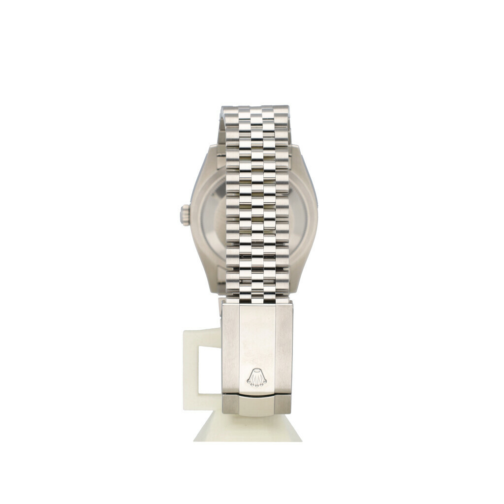 In very good condition Rolex Datejust 36 in steel and white gold with so called wimbledon dial, white gold fluted bezel and steel Jubilee bracelet from 2021 complete with box and papers.