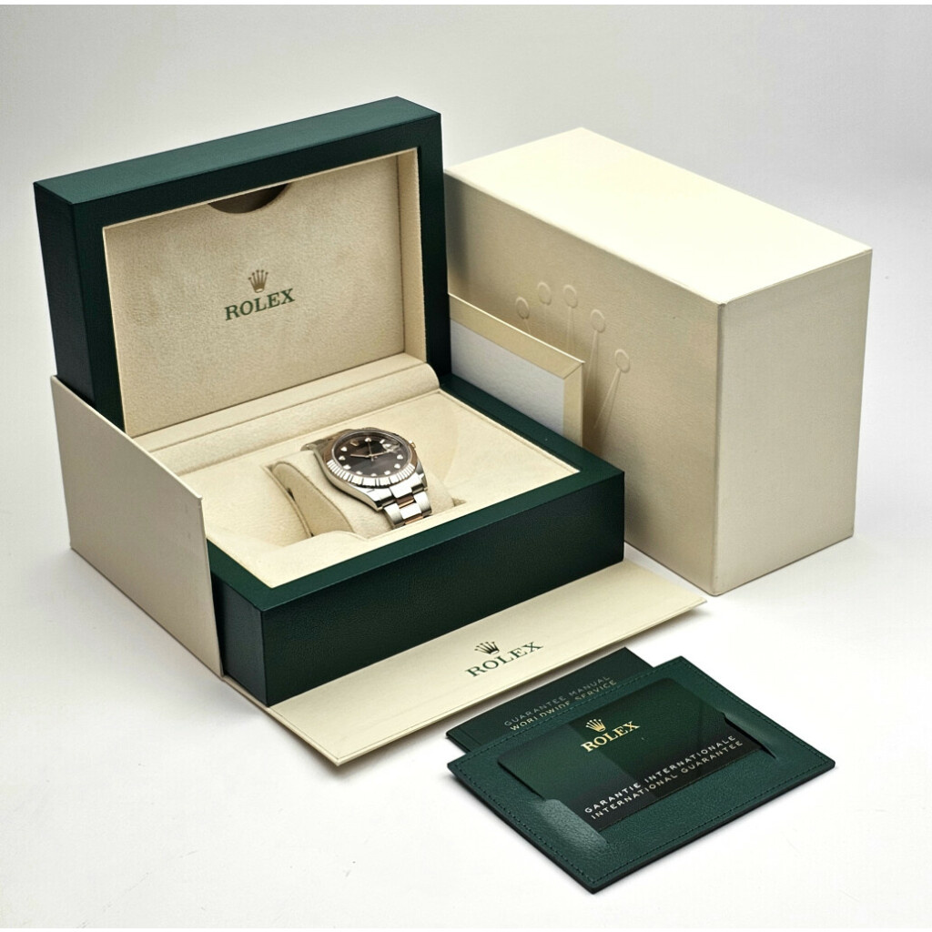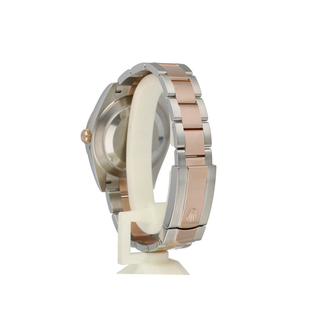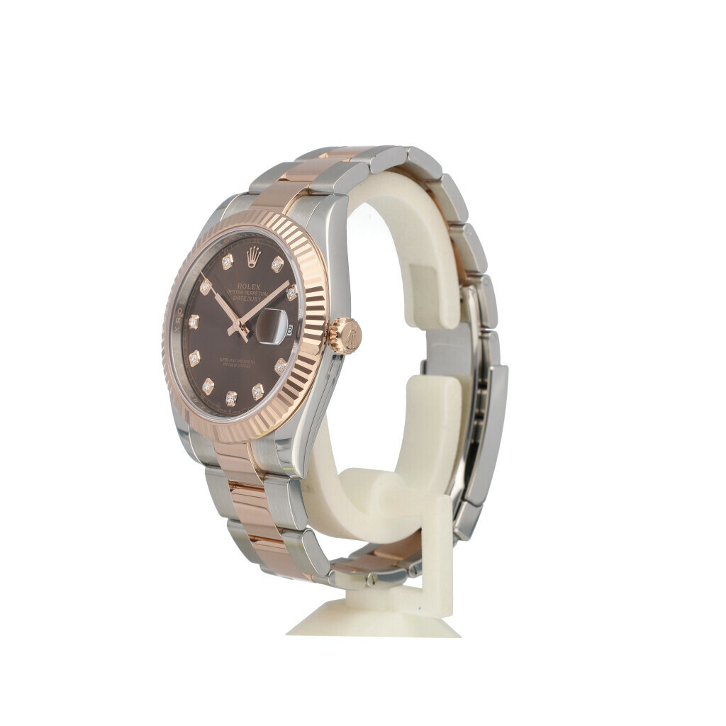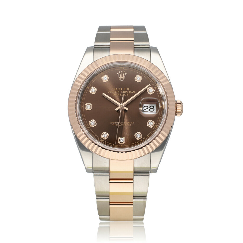 In very good condition Rolex Datejust 41 in steel and rose gold with factory choco diamond dial and steel and rose gold Oyster bracelet from 2024 complete with box and papers.