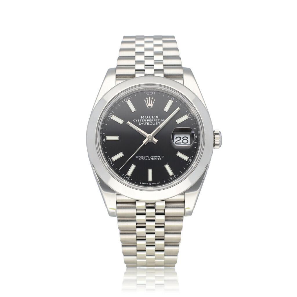 In very good condition Rolex Datejust 41 in steel with black index dial, steel domed bezel and steel Oyster bracelet from 2023 complete with box and papers.