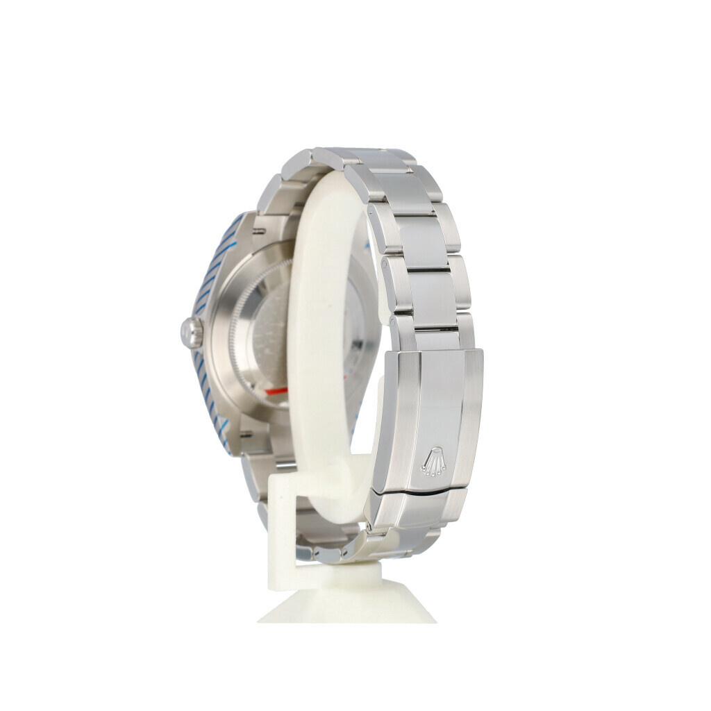 In very good condition Rolex Datejust 41 in steel and white gold with black dial, white gold bezel and steel Oyster bracelet from 2019 complete with box and papers. Rolex serviced 7-2025 and not worn since. Rolex service certificate included.