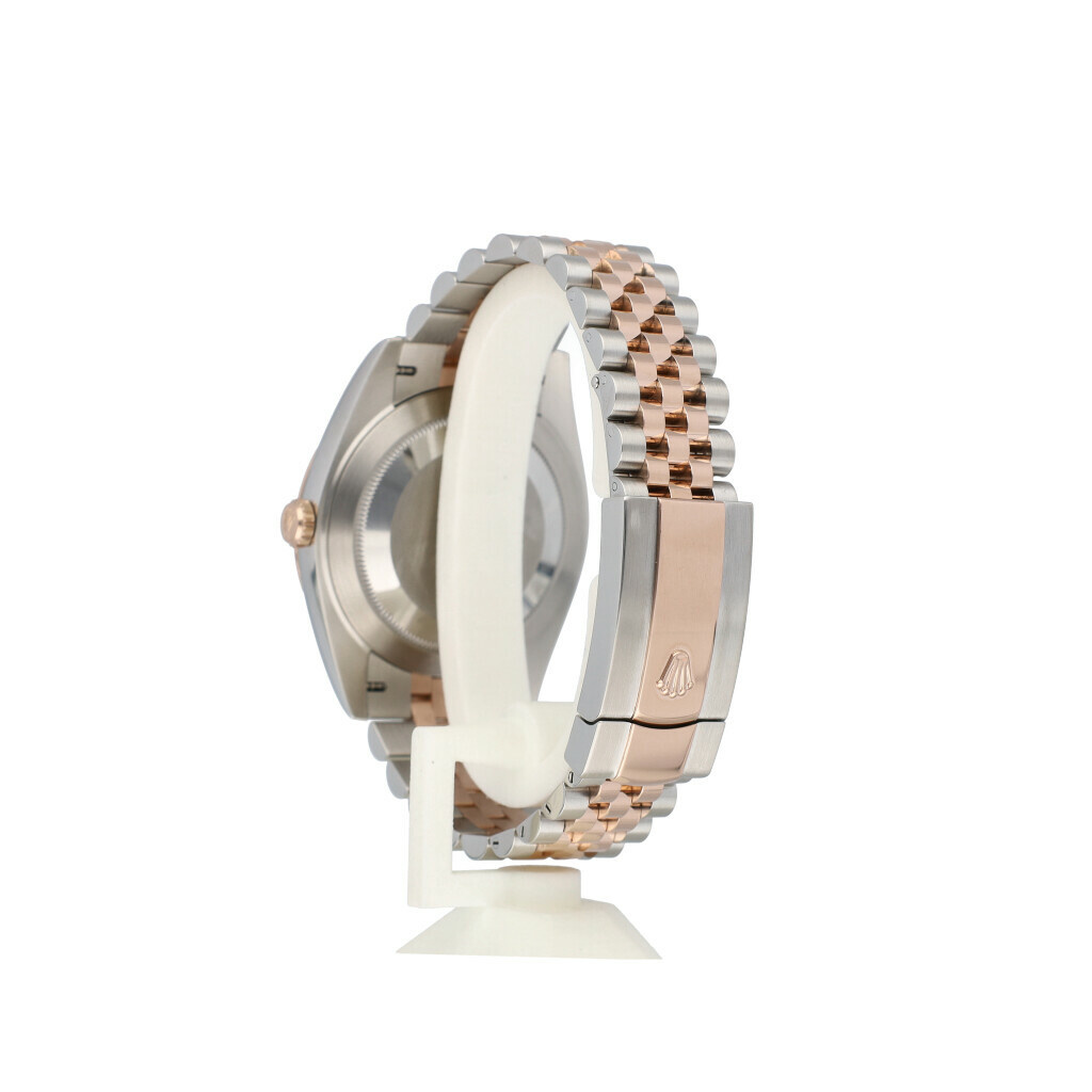 In very good condition Rolex Datejust 41 in steel and rose gold with grey so called 'Wimbledon' dial and steel and rose gold Jubilee bracelet from 2022 complete with box and papers. Rolex serviced 6-2025 and not worn since. Rolex service certificate included.