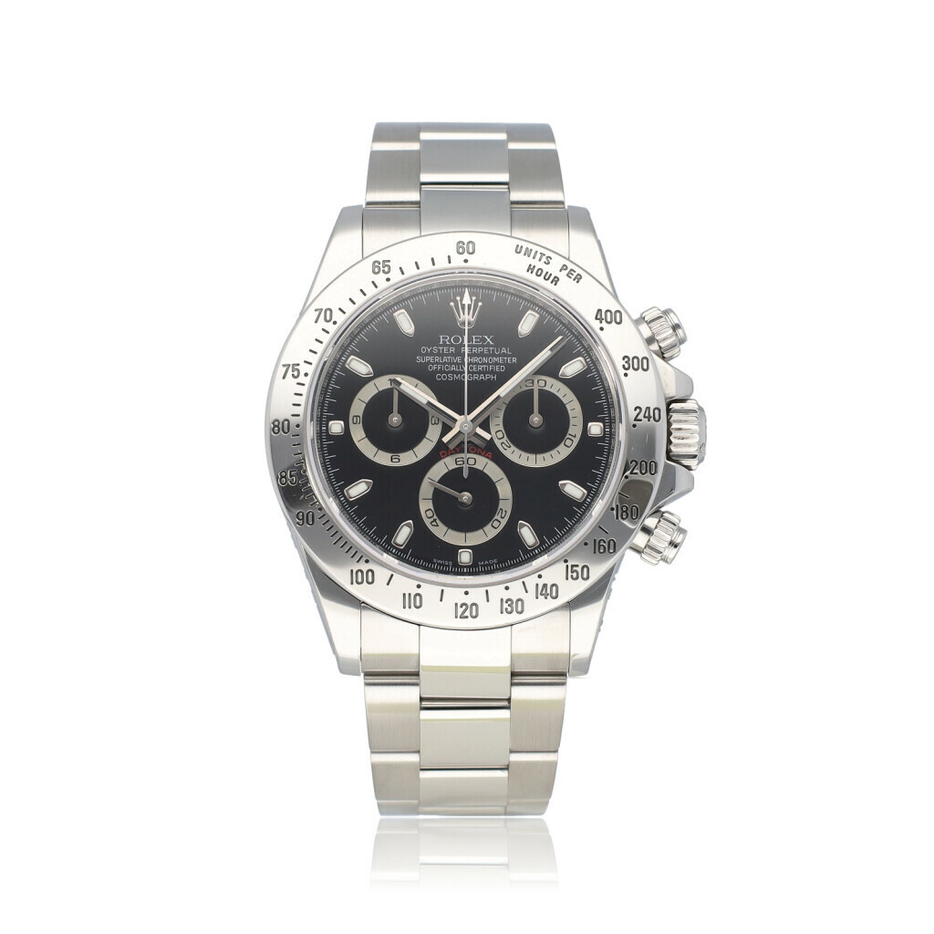 In very good condition Rolex Daytona in steel with black dial from 2009 complete with box and papers.
