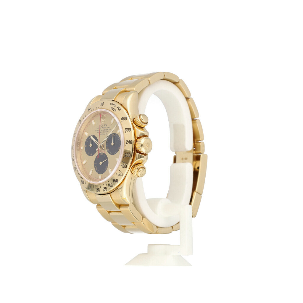 In very good condition Rolex Daytona in yellow gold with champagne 'Paul Newman' dial and yellow gold Oyster bracelet from +/- 2007 (Z131... serial, year can't be seen on certificate). No box and/or papers. Film layer has come loose on certificate.