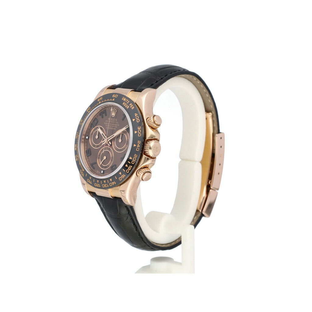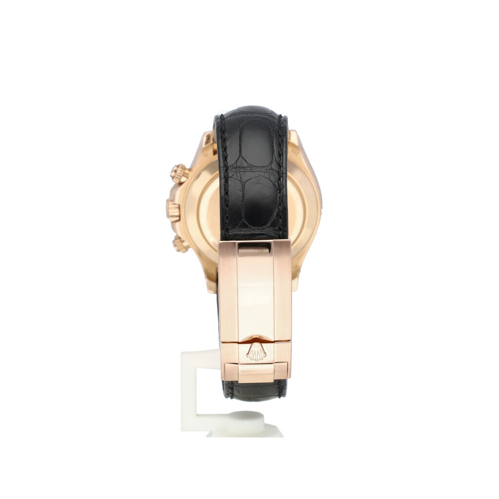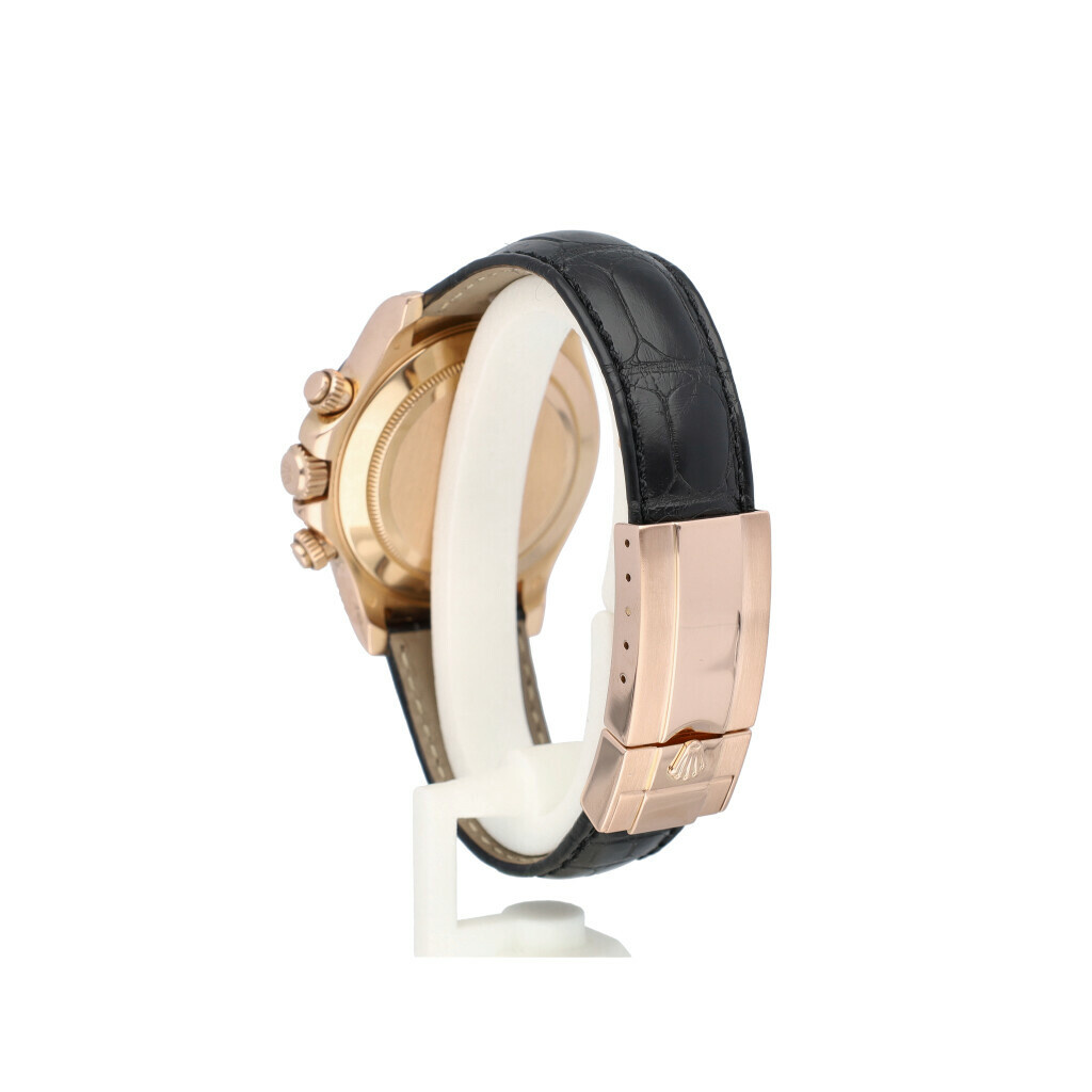 In very good condition Rolex Daytona in rose gold with brown dial and leathter strap from +/- 2010 (G734... serial) complete with box, no papers. Comes with new black Rolex alligator strap. Not worn since.