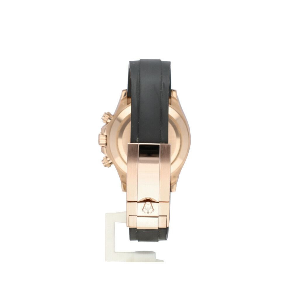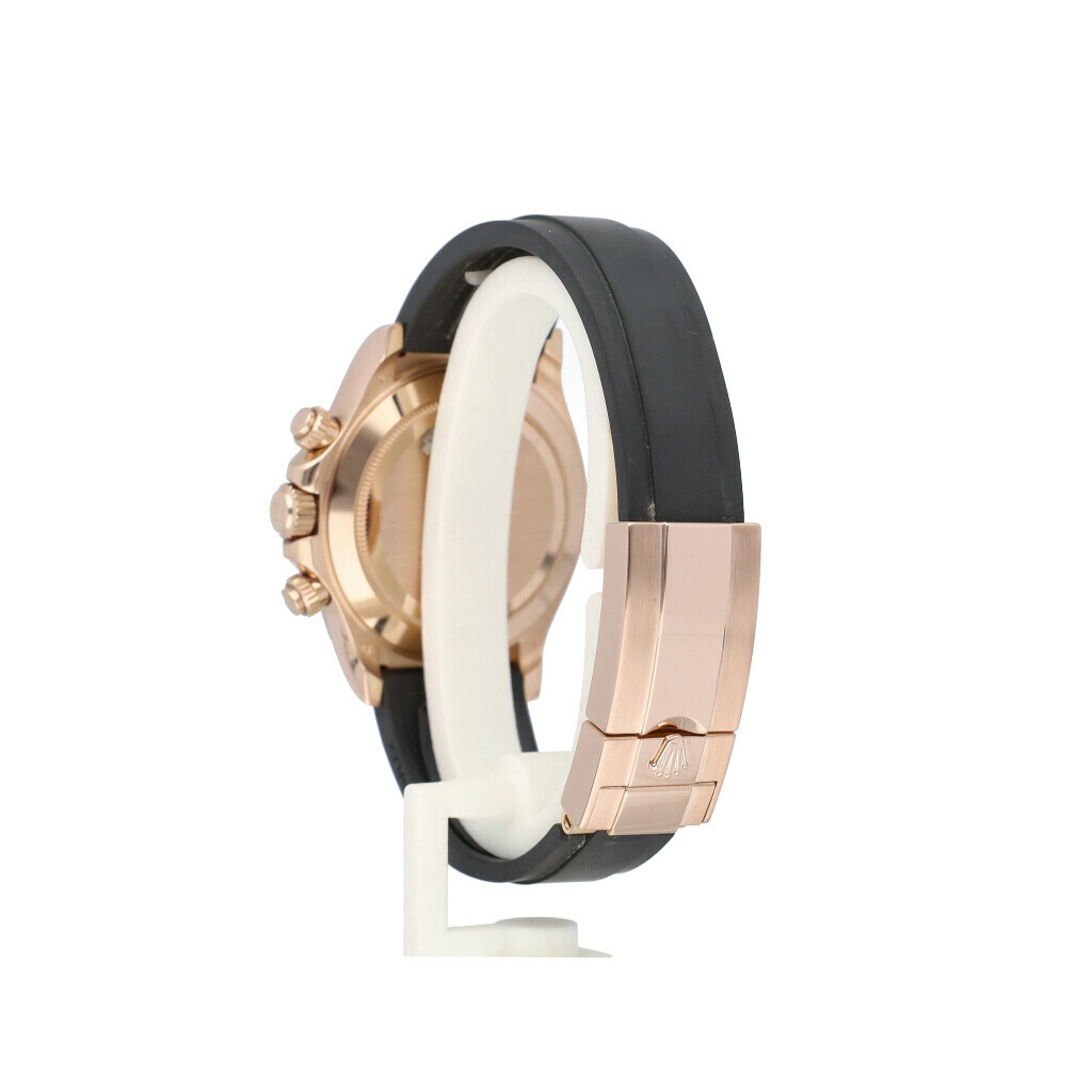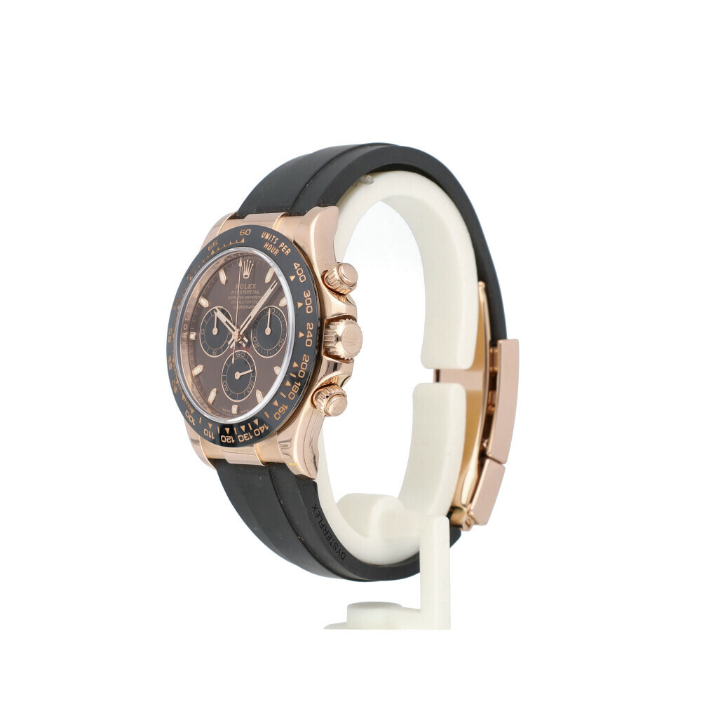 In very good condition Rolex Daytona in rose gold with brown dial, black ceramic bezel and rubber Oysterflex strap from 2022 complete with box and papers.