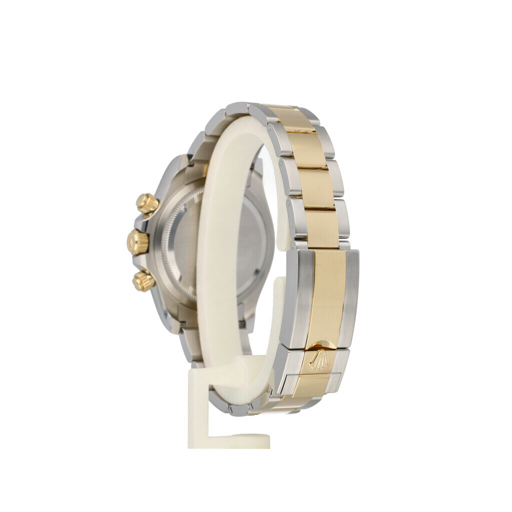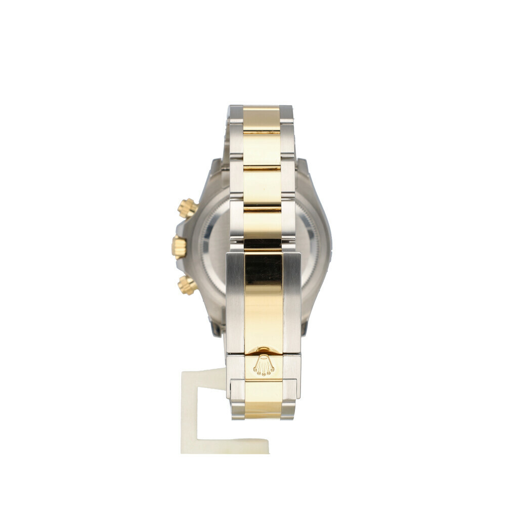 In very good condition Rolex Daytona in steel and yellow gold with black dial, yellow gold bezel and steel and yellow gold Oyster bracelet from 2024 complete with box and papers.