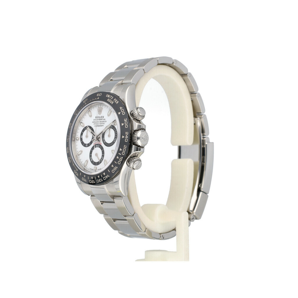 In very good condition Rolex Daytona in steel with white so called 'panda' dial, black ceramic bezel and steel Oyster bracelet from 2023 complete with box and papers.
