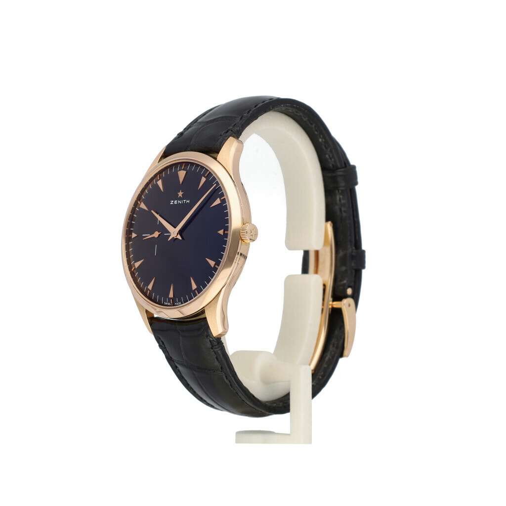 In very good condition Zenith Classic Ultra Thin Small Second in rose gold with black dial and alligator leather strap from 2019 complete with box and papers.