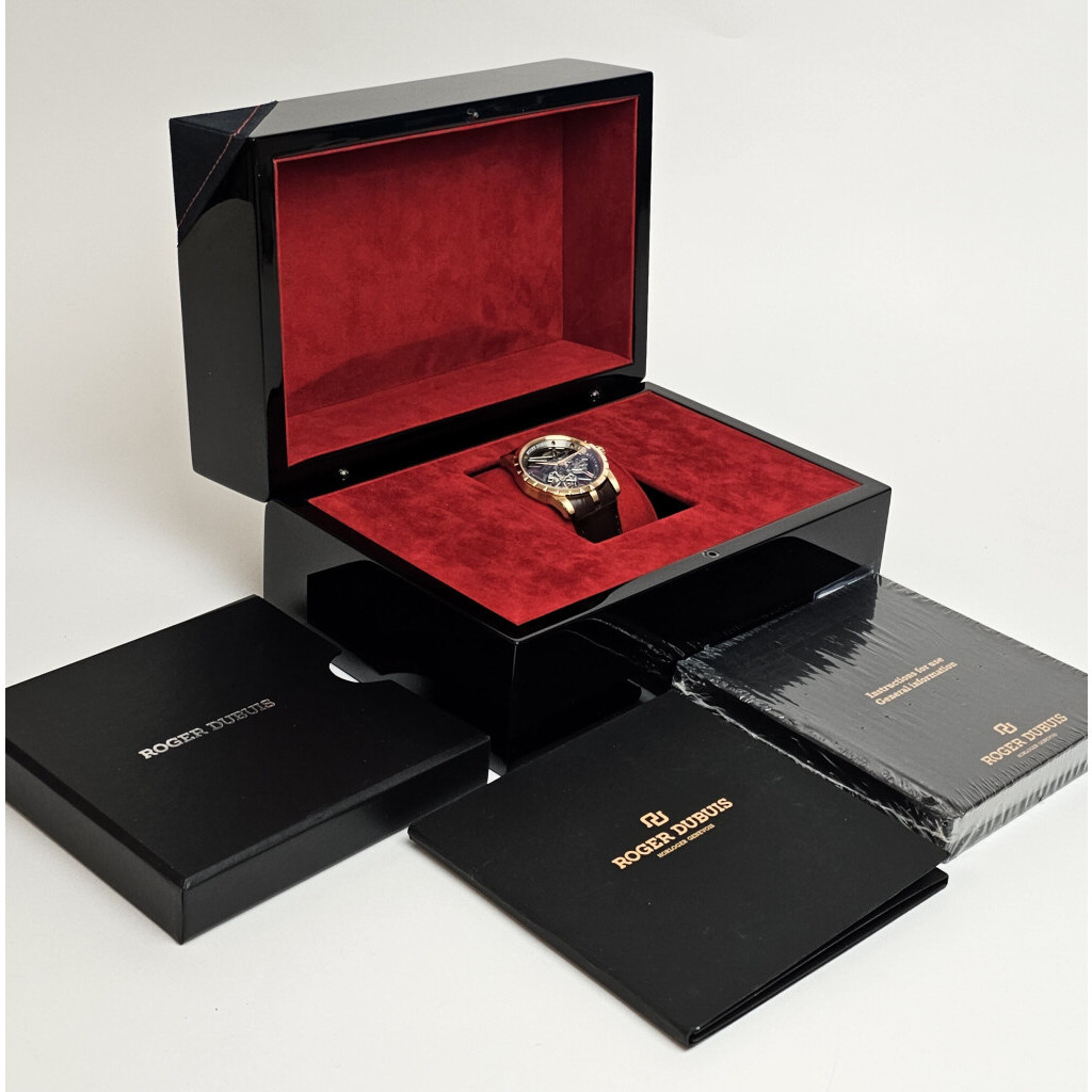 In very good condition Roger Dubuis Excalibur Skeleton Flying Tourbillon from 2020 complete with box and papers.