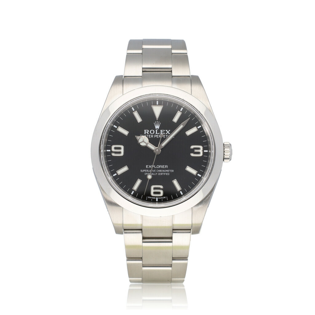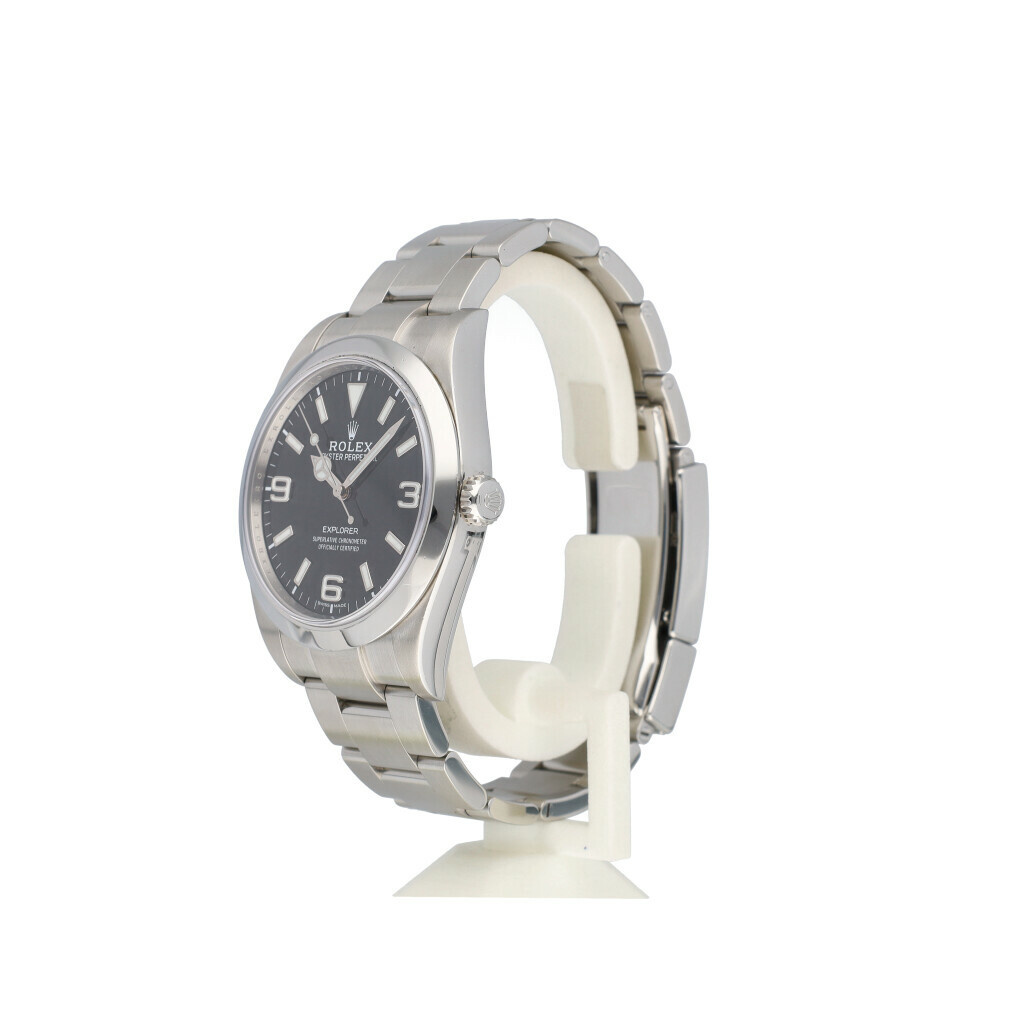 In very good condition Rolex Explorer in steel with black dial, steel domed bezel and steel Oyster bracelet from 2011 complete with box and papers.