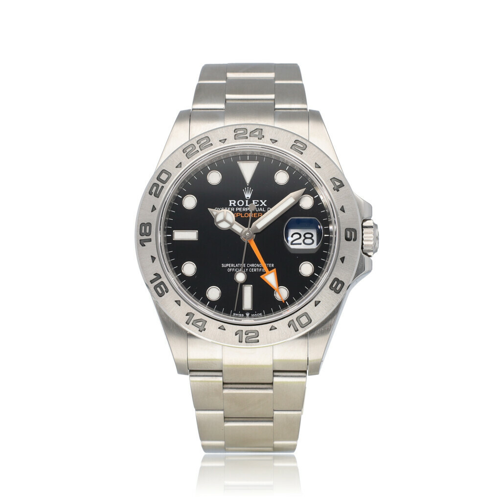 In very good Rolex Explorer II in steel with black dial, steel bezel and steel Oyster bracelet from 2022 complete with box and papers.
