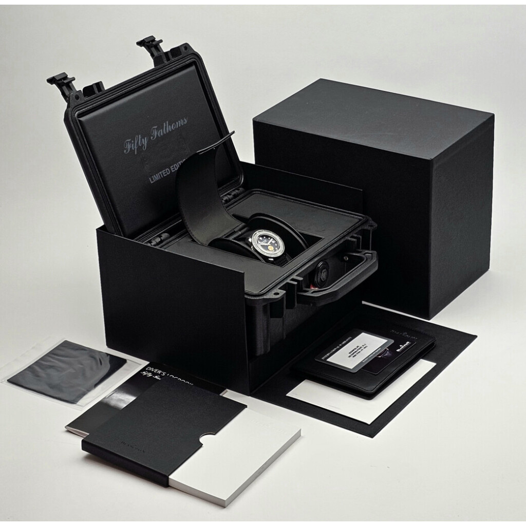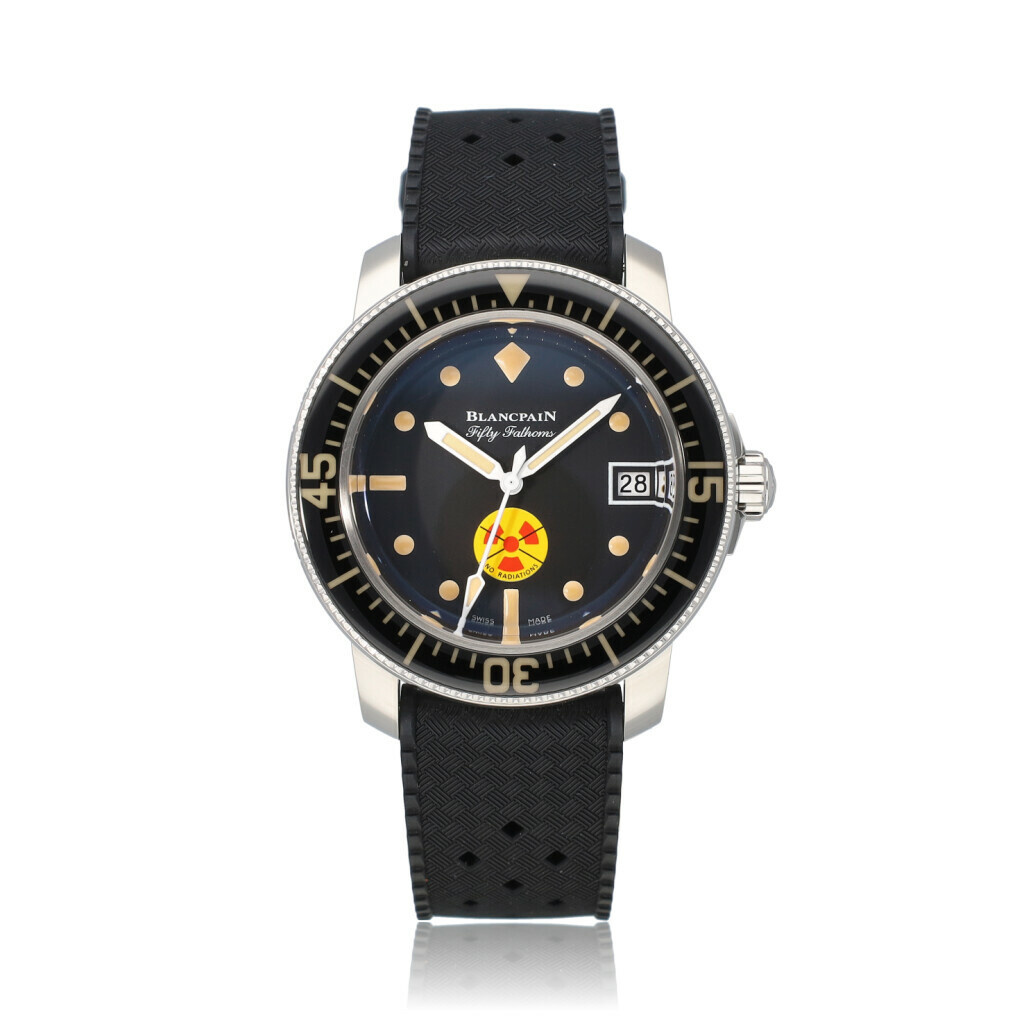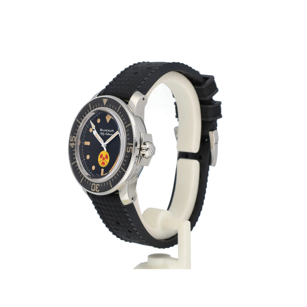 New, unworn Blancpain Fifty Fanthoms Tribute To Fifty Fanthoms No Rad Limited Edition of 550 pieces worldwide in steel with black dial and rubber strap from 2021 complete with box and papers.