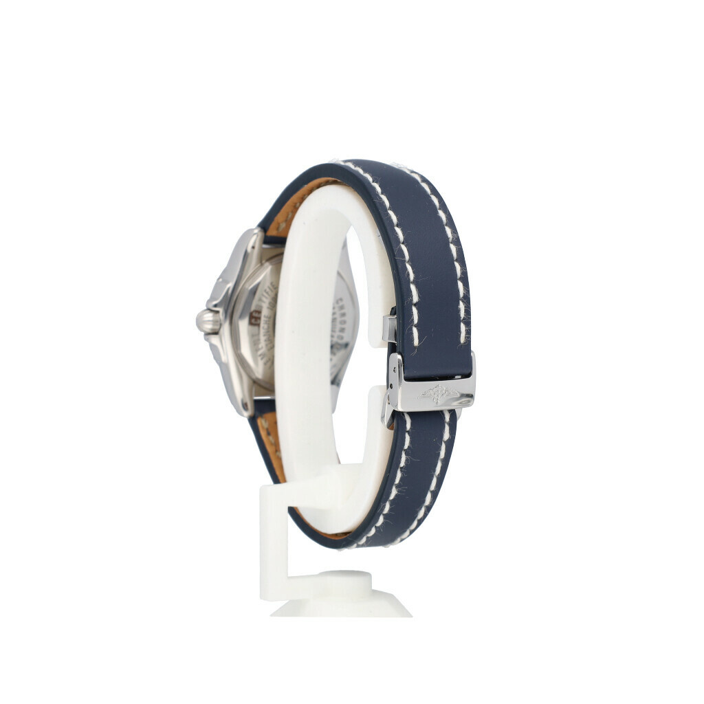 In very good condition Breitling Cockpit Lady in steel with a factory black diamond dial and new black Breitling strap complete with box, no papers. Breilting serviced 3-2025 for € 600,65 and not worn since. Breitling service papers included.