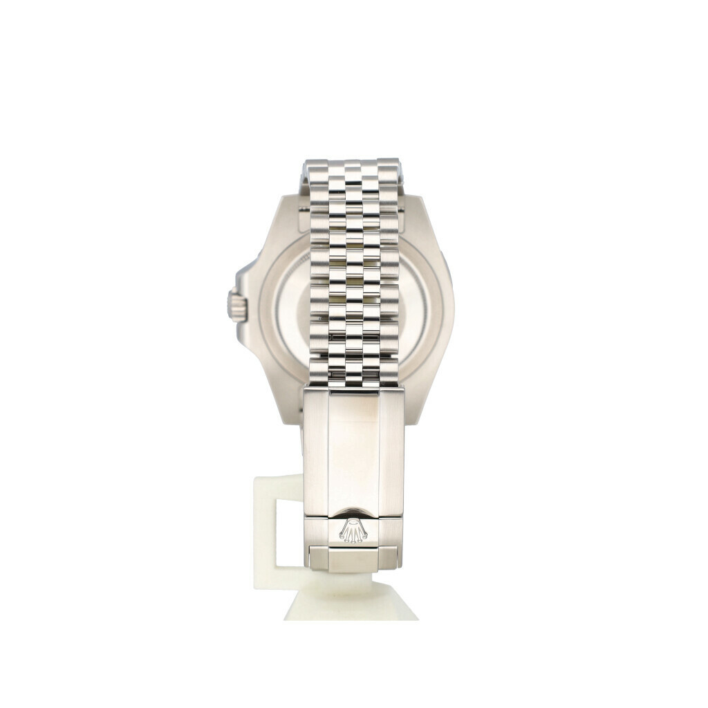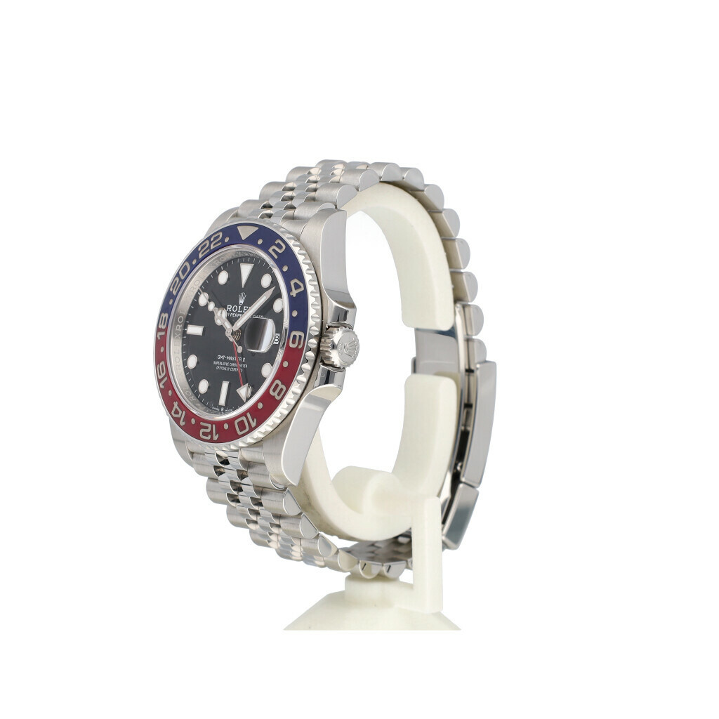 In very good condition Rolex GMT in steel with black dial, red and blue so called Pepsi bezel and steel Jubilee bracelet from 2024 complete with box and papers.