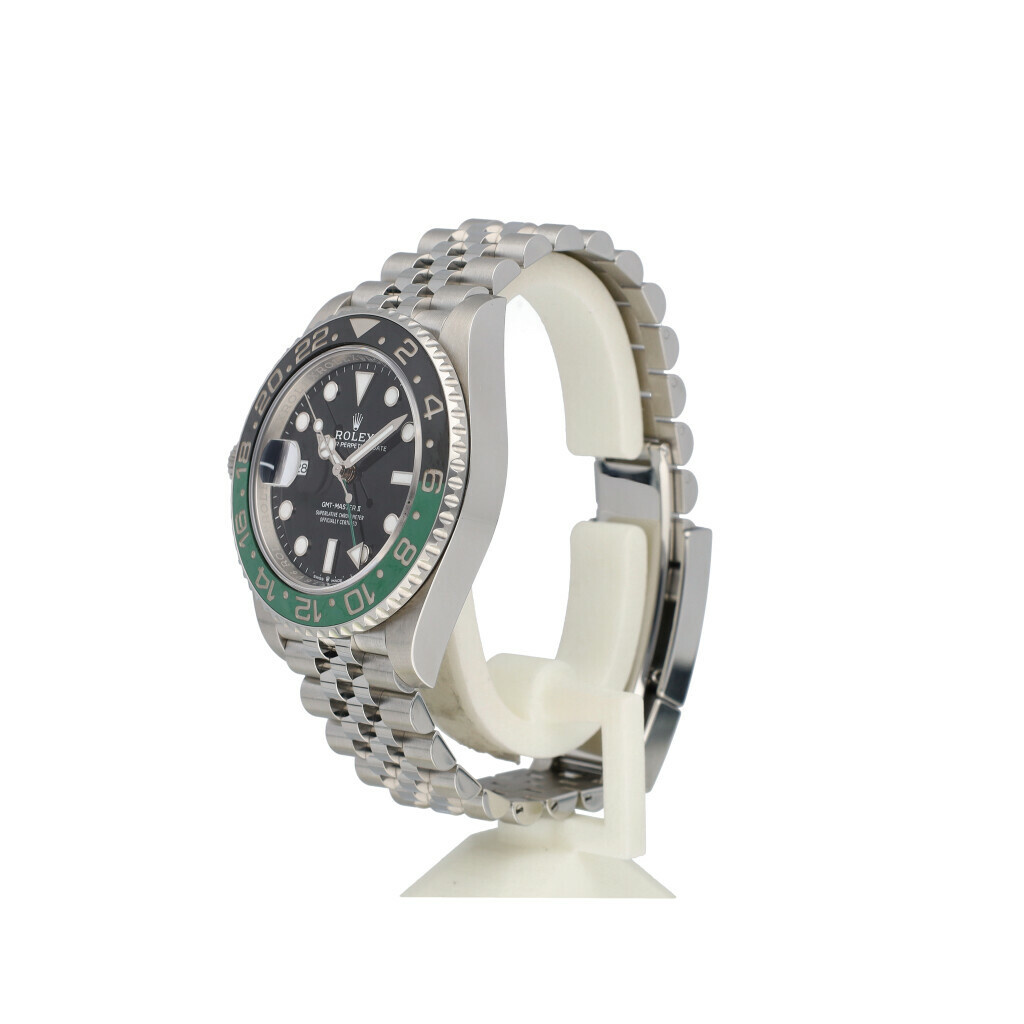 In very good condition Rolex GMT-Master II left handed so called 'Sprite' in steel with Jubilee bracelet from 2024 complete with box and papers