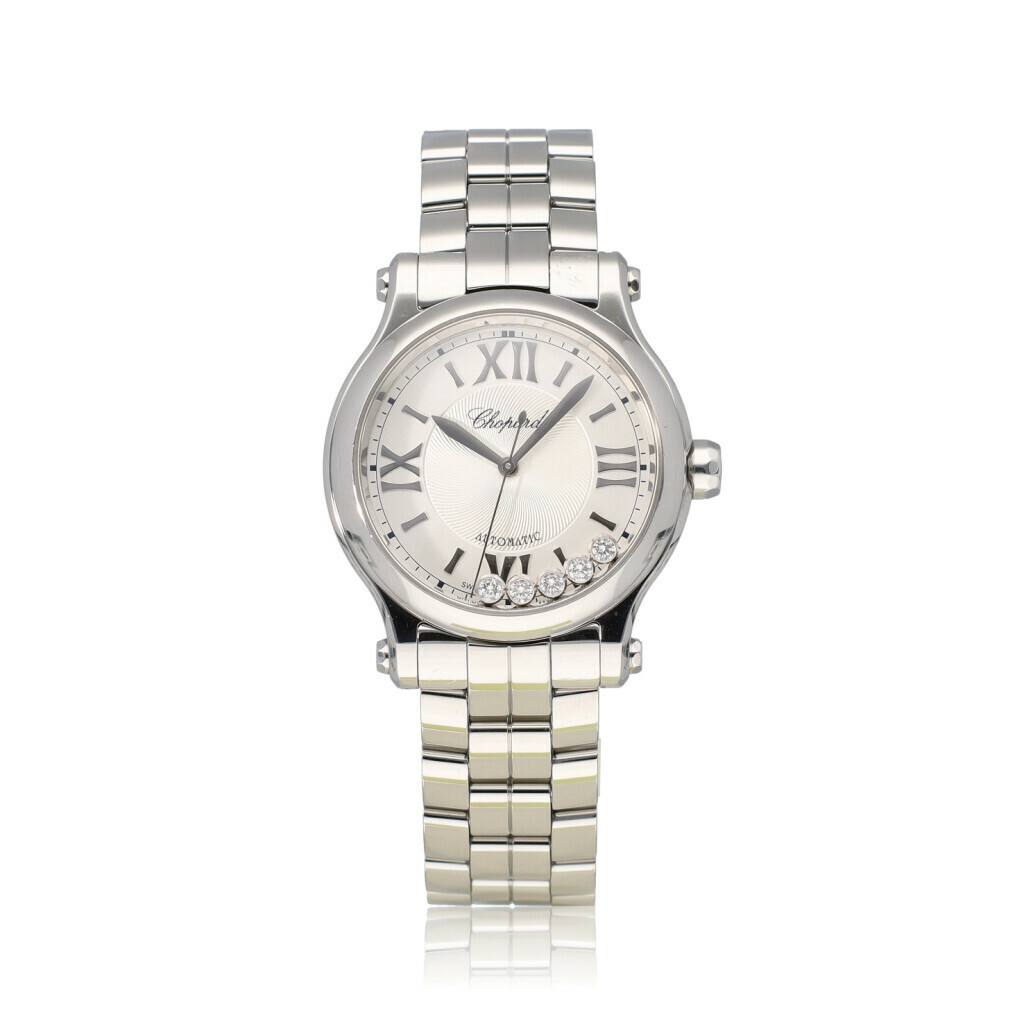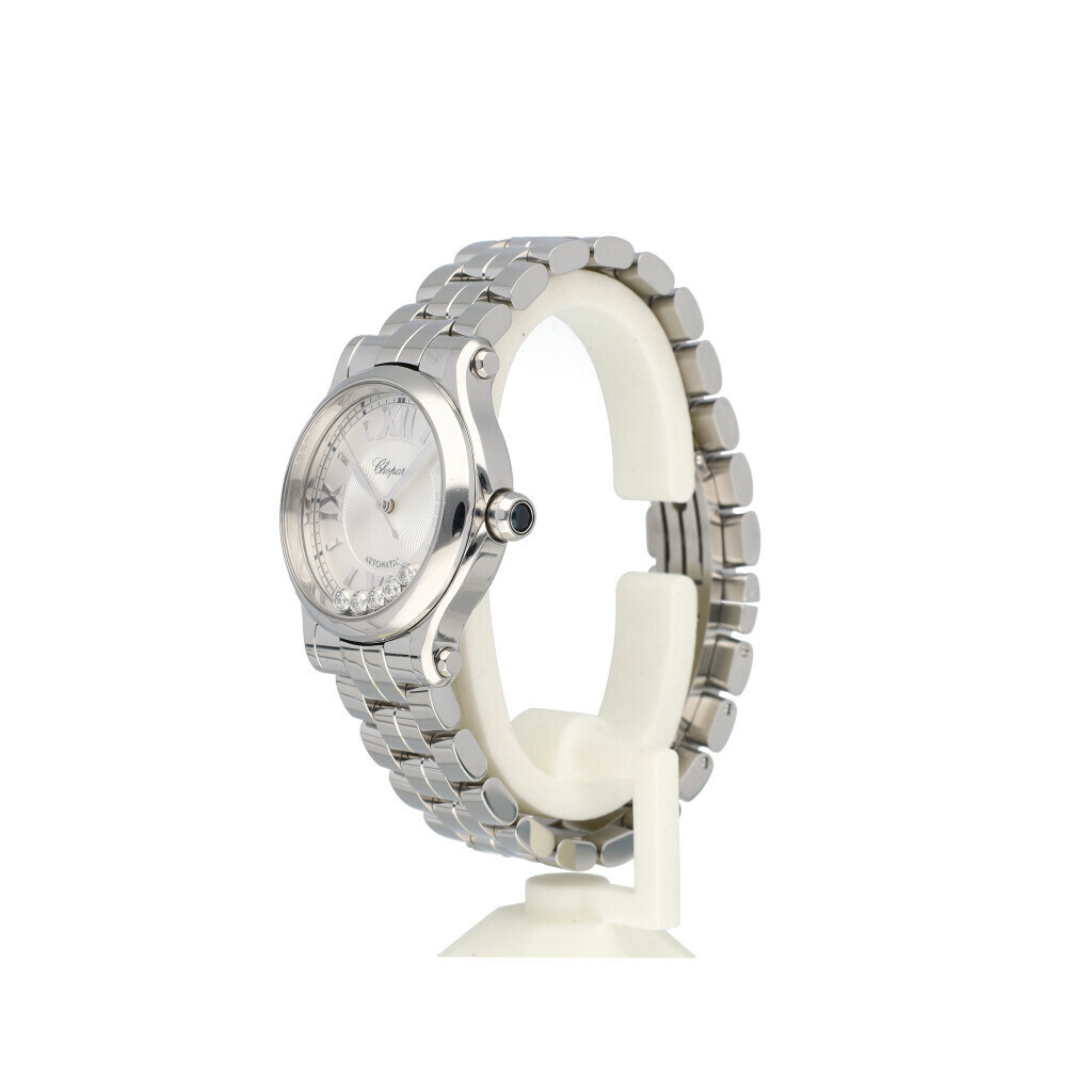 In very good condition Chopard Happy Sport in steel with 4x diamond zilver dial from 2022 complete with box and papers.