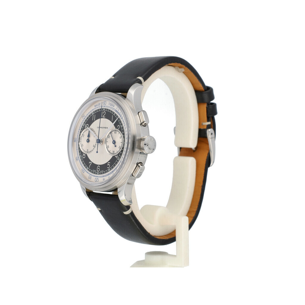 In very good condition Longines Heritage Classic Chronograph in steel with leather strap from 2025 complete with box and papers.
